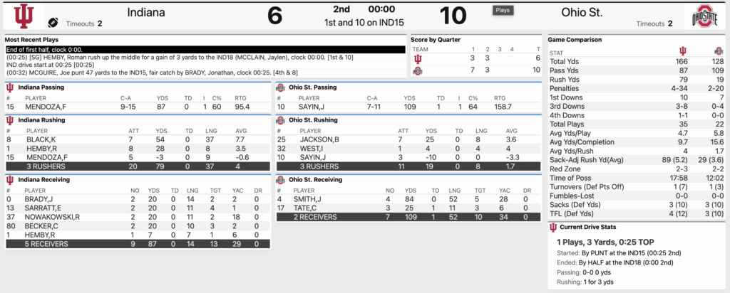 HT: Ohio State 10, Indiana 6