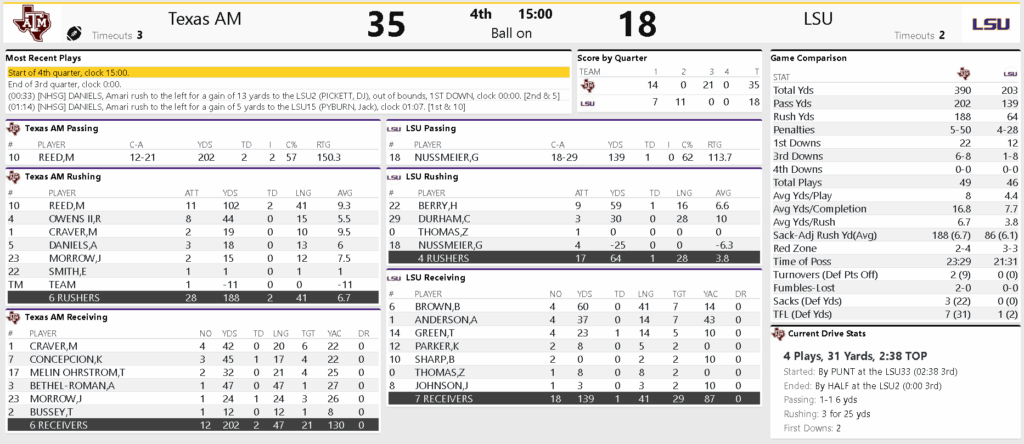 SCORE ALERT – 4:02, 3Q: Texas A&M 35-18 LSU