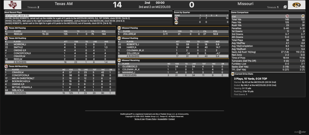 Halftime: Texas A&M 14, Missouri 0