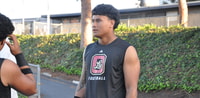 8/18/25Behemoth defensive lineman with eye-catching movement skills and power. Checks in at around 6-foot-7.5, 265 pounds. Should easily get to around 300 pounds with his big frame. Primarily lines up as a big defensive end for his high school to this point, but could end up sliding inside long-term. Flashes encouraging first-step quickness and has the power to forklift offensive linemen into the backfield. Turned in a productive freshman season, notching 10 tackles for loss and five sacks against strong competition.