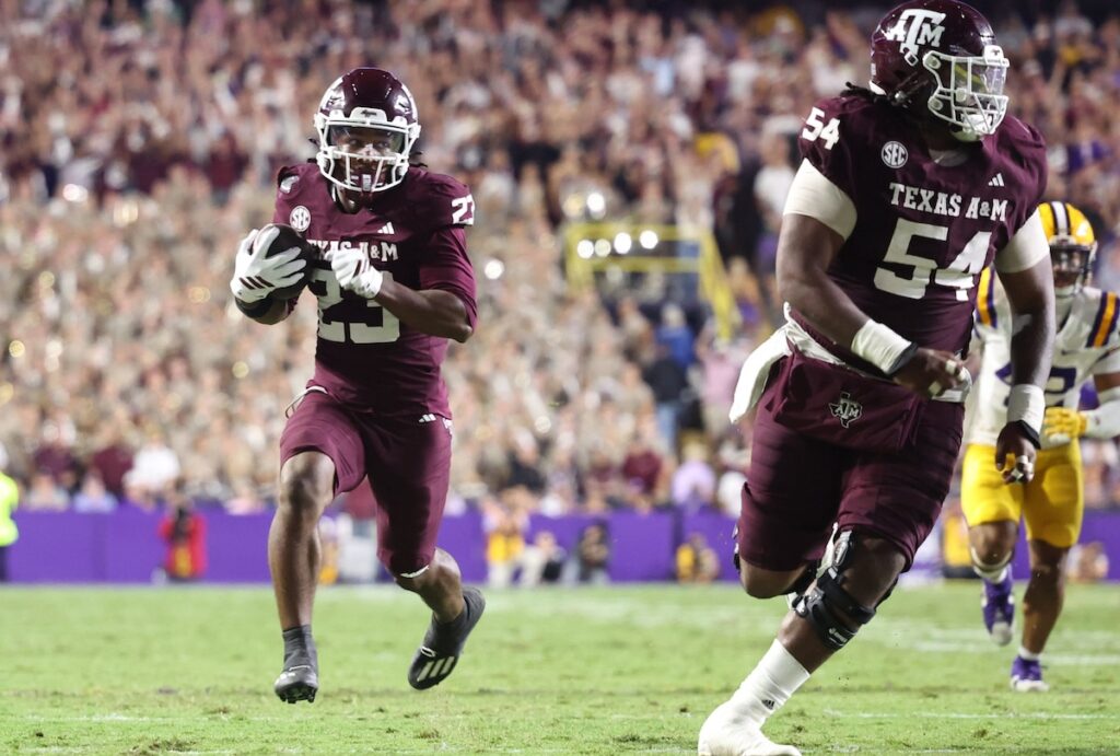 On LSU’s next drive, the Aggies were able to force the Tigers to punt on 4th and 2 from their own 26, which drew loud boos from the restive Tiger Stadium crowd. A&M got the ball at midfield after Bussey’s muff was recovered by Bravion Rogers, then proceeded to get a little help from the home team to keep their drive moving. On 3rd and 2 from the LSU 42, Owens (8 carries, 49 yards) ran for 8 yards and a first down, but a defensive holding penalty on LSU defensive tackle Bernard Gooden tacked on 10 more. One play later, Reed found running back Jamarion Morrow (3 carries, 26 yards, 1 TD; 1 catch, 24 yards, 1 TD) on a simple screen pass that became an untouched 24-yard touchdown and sent large portions of the LSU faithful to the exits with 4:02 remaining in the third quarter.