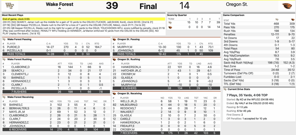 RECAP - Oregon State Falls To Wake Forest 39-14