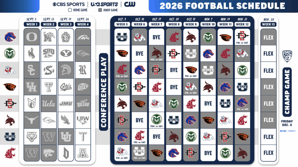 “We can’t wait to kick off the new era of Pac-12 football,” said Pac-12 Commissioner Teresa Gould. “Today’s schedule release is a major milestone on our path to launch, and the creativity behind our 2026 format reflects the strategic vision for what this conference will become. With national coverage across CBS Sports, USA Network and The CW, the new Pac-12 will debut on a national stage from day one.”