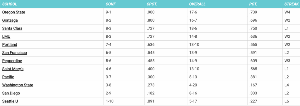 WCC Conference Standings