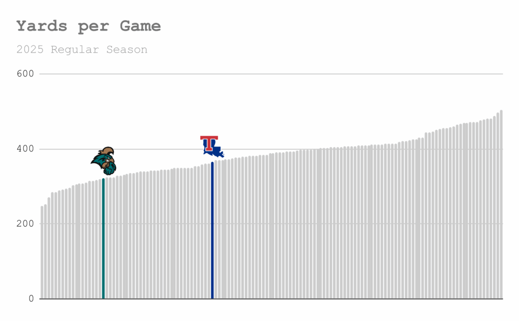 Coastal Carolina isn’t the only team affected by these factors. But if the 2025 Bulldog defense plays like the 2025 Bulldog defense and shuts down the run game one final time on the penultimate day of the year, Louisiana Tech’s former defensive coordinator Jeremiah Johnson may watch Louisiana Tech’s new defensive coordinator Luke Olsen do what he couldn’t a year ago: hoist the Independence Bowl trophy.