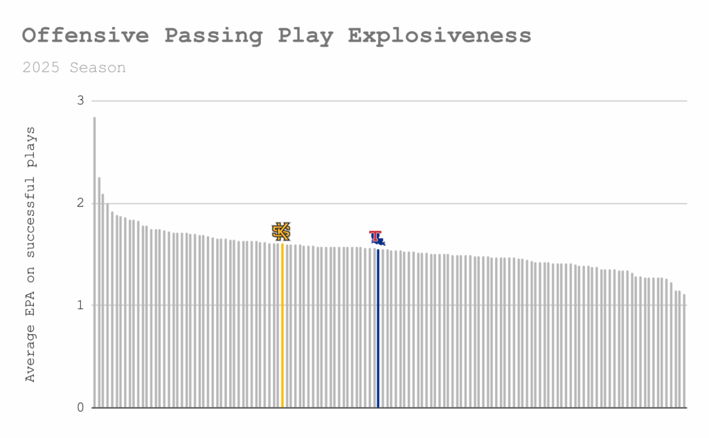 And this just so happens to be a potential Achilles’ heel for the Tech defense. Despite boasting a defense that ranks top 50 in most categories, Tech sits just inside the bottom 50 nationally in defending explosive pass plays.