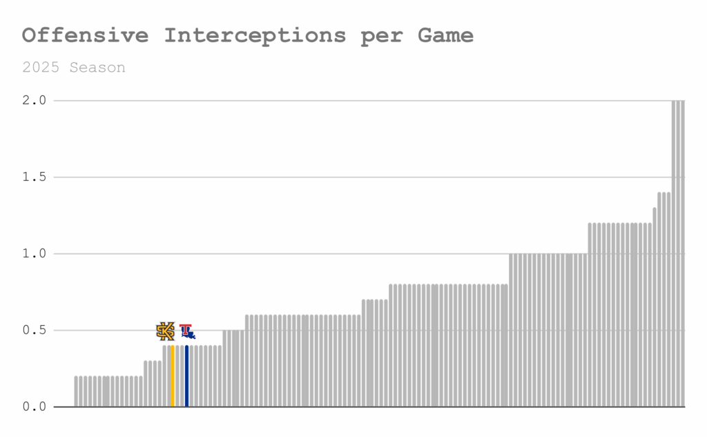 Of course, they’ll be going up against a Tech defense that leads the entire country in interceptions per game.