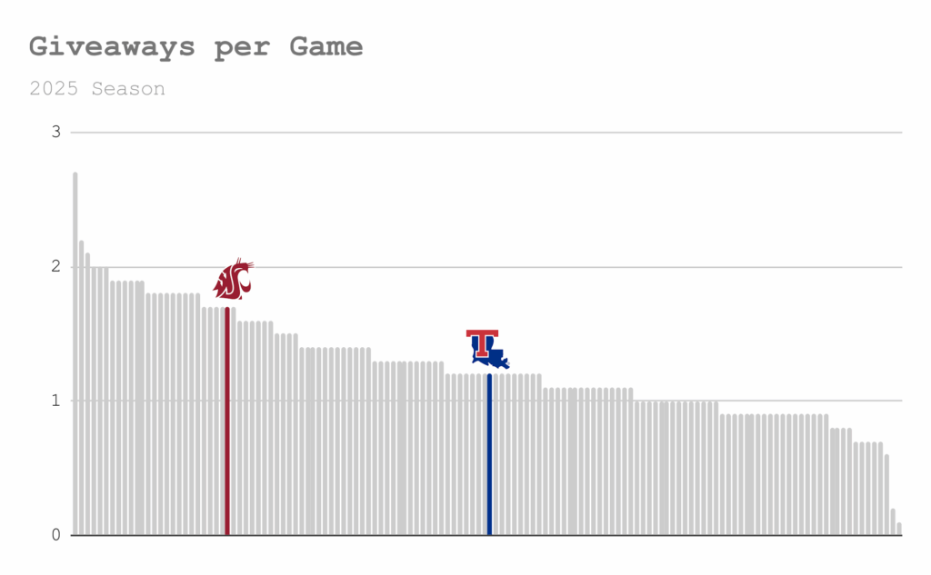 Washington State has struggled here, too. They rank 26th-worst nationally in turnovers committed, while Tech sits right around the middle of the pack: