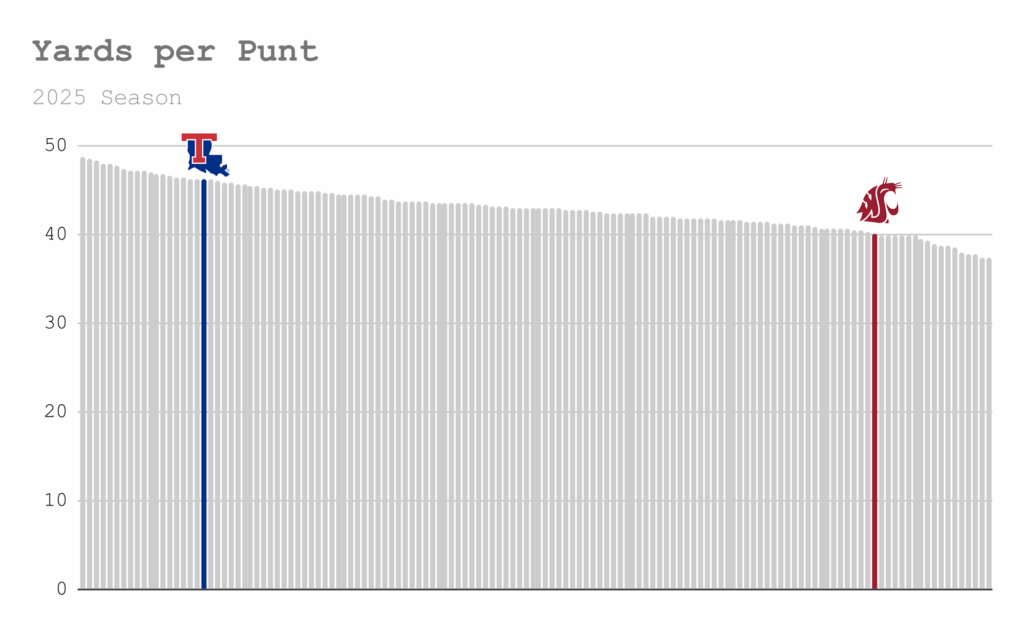 Tech’s punter, John Hoyet Chance, has been one of the unsung heroes of the season, consistently booming kicks to pin opponents deep. Washington State’s Ryan Harris has likely seen less fanfare: