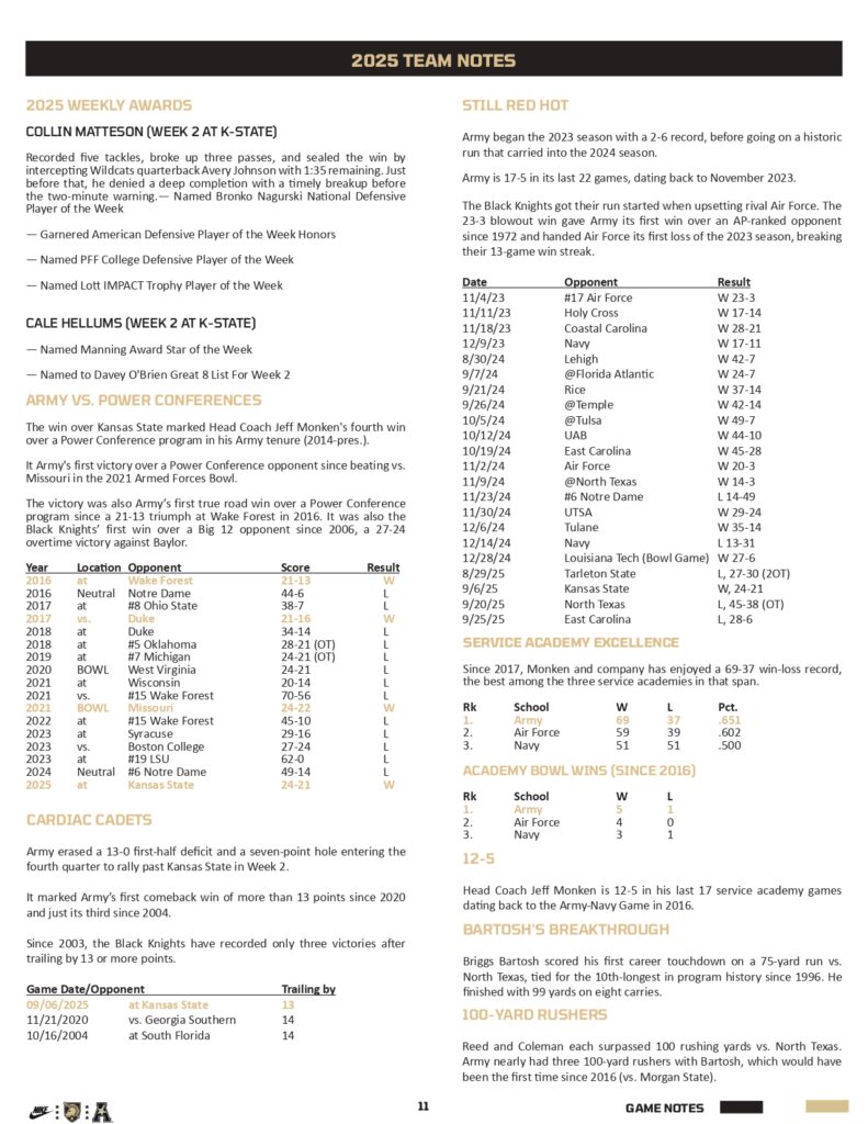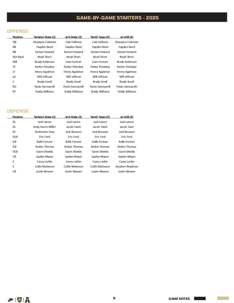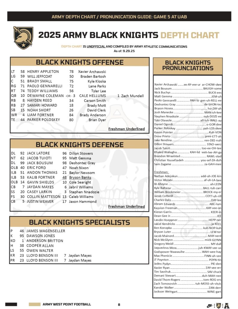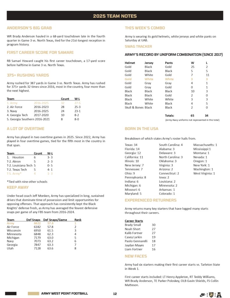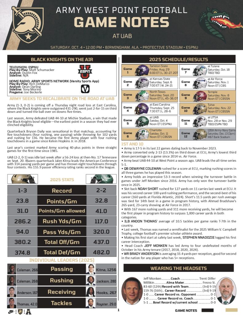 The following are the Army West Point Football game notes for this week’s matchup at UAB, including updated rosters, two-deeps, and information … courtesy of Army West Point Athletic Communications.