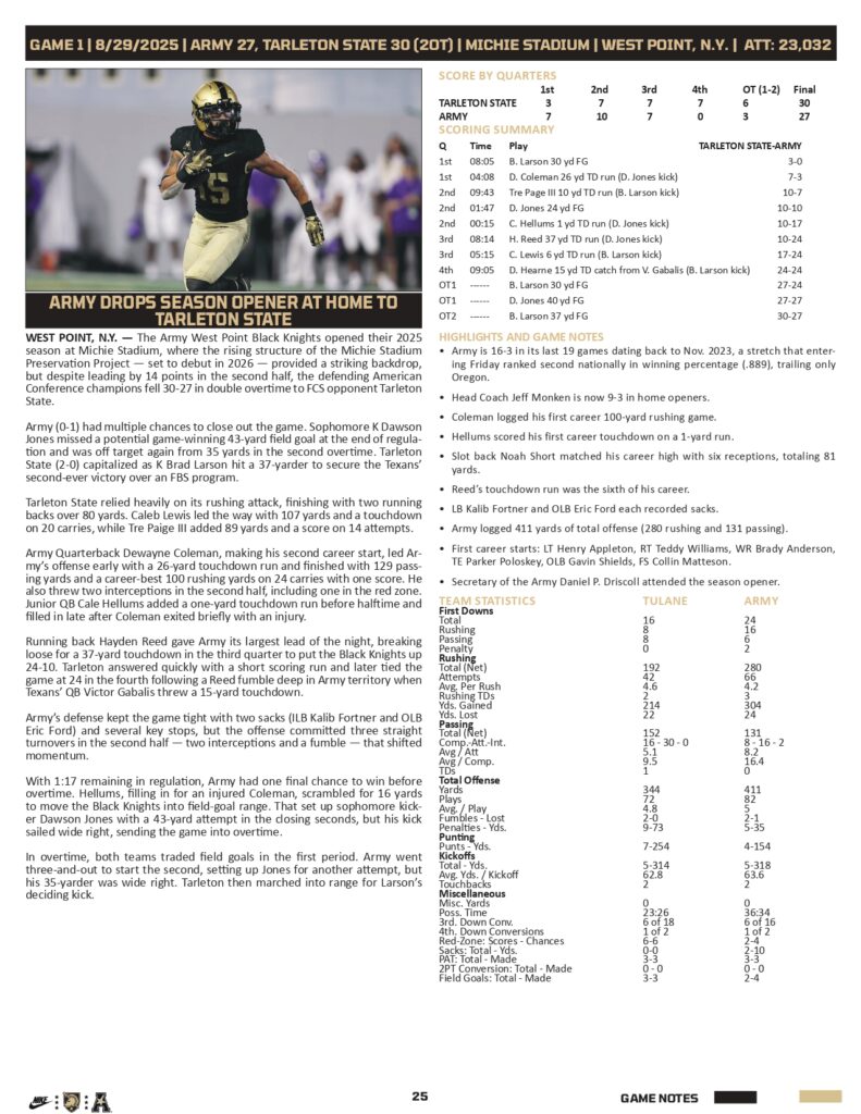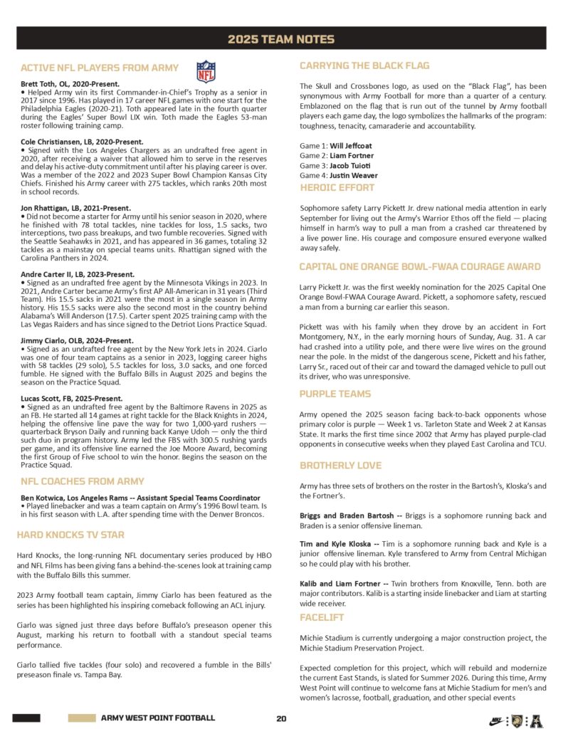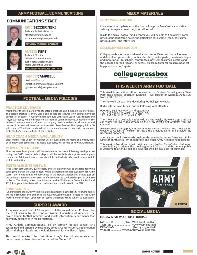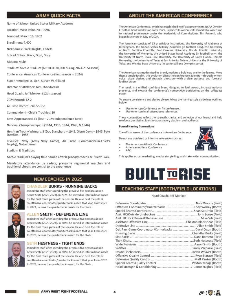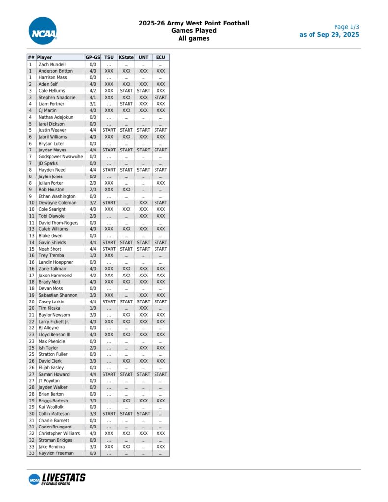 The following are the Army West Point Football game notes for this week’s matchup at UAB, including updated rosters, two-deeps, and information … courtesy of Army West Point Athletic Communications.