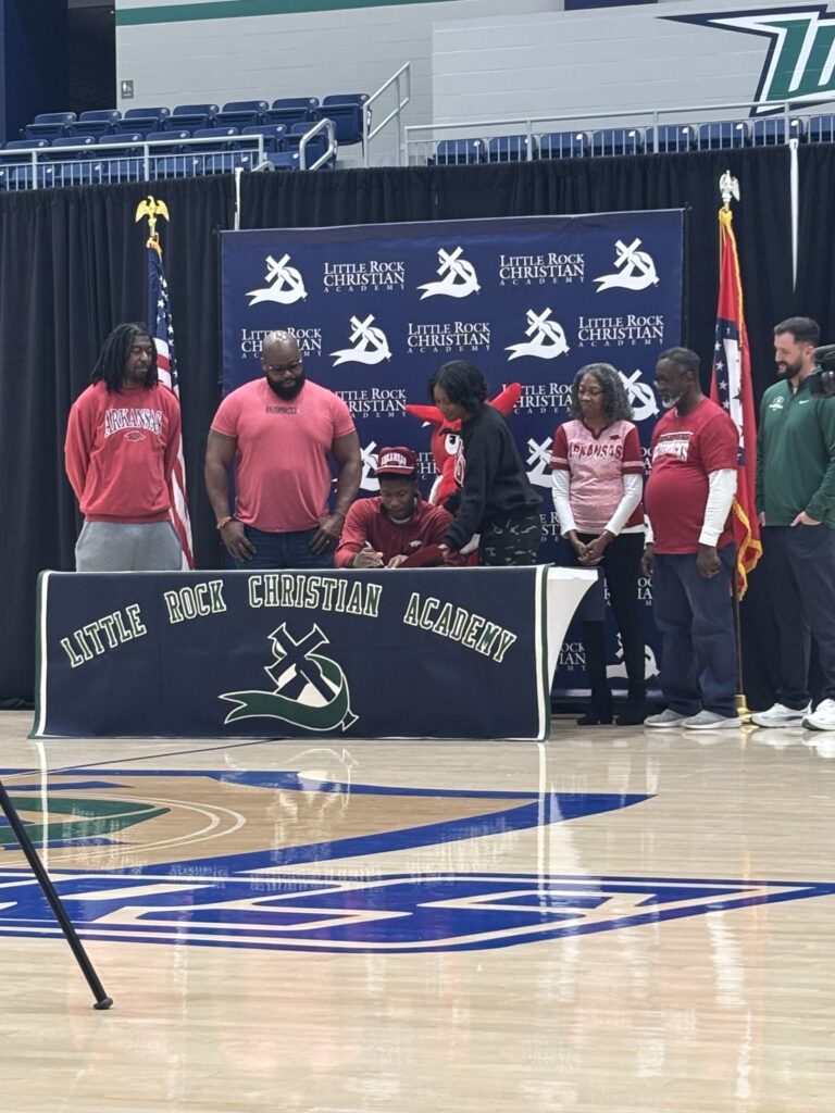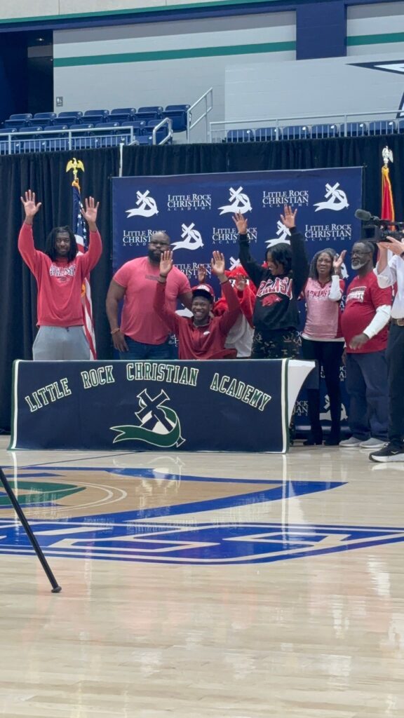 Andrews, who committed to Arkansas in May over Missouri and LSU, put pen to paper and made it official at a Signing Day ceremony at Little Rock Christian Academy. After the ink dried, Andrews led the crowd in a “Woo Pig Sooie” chant.