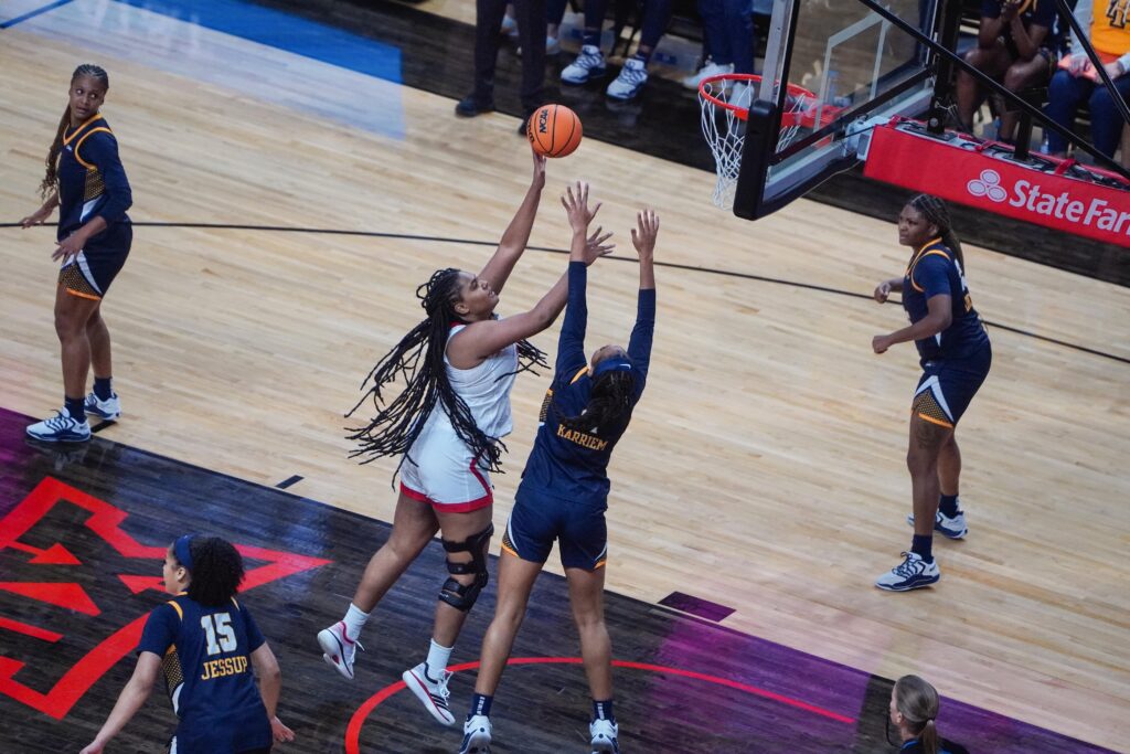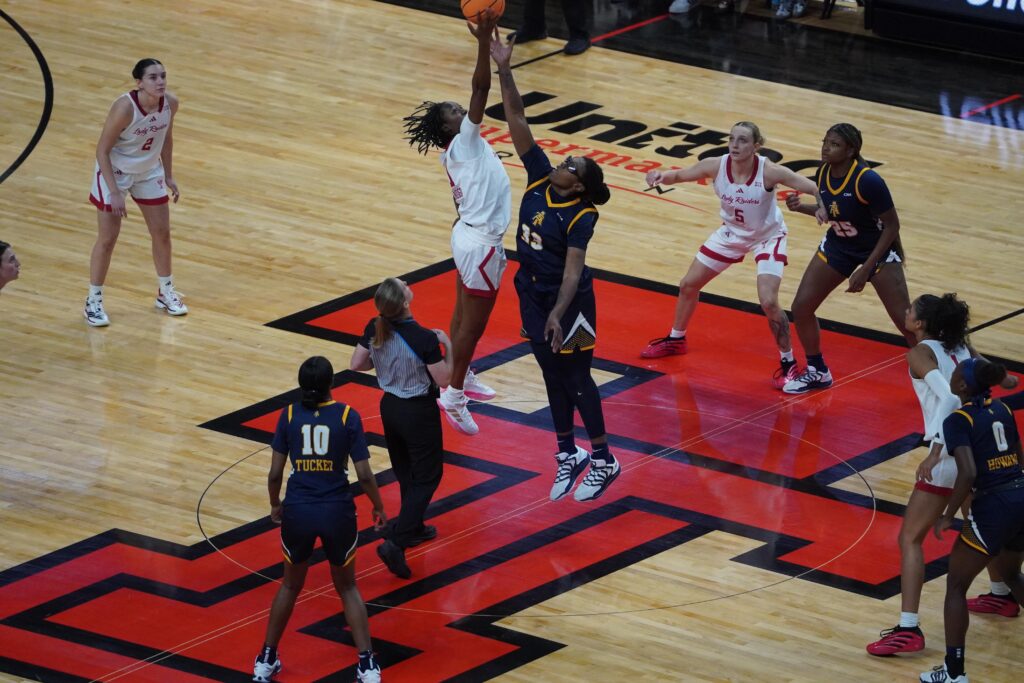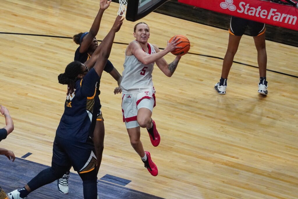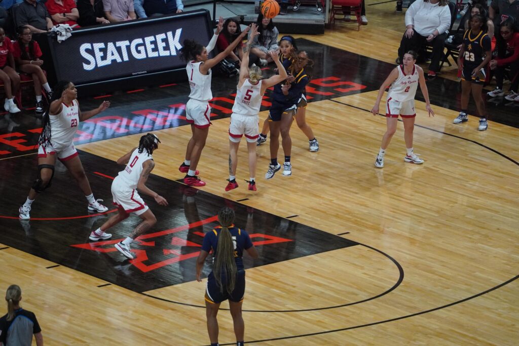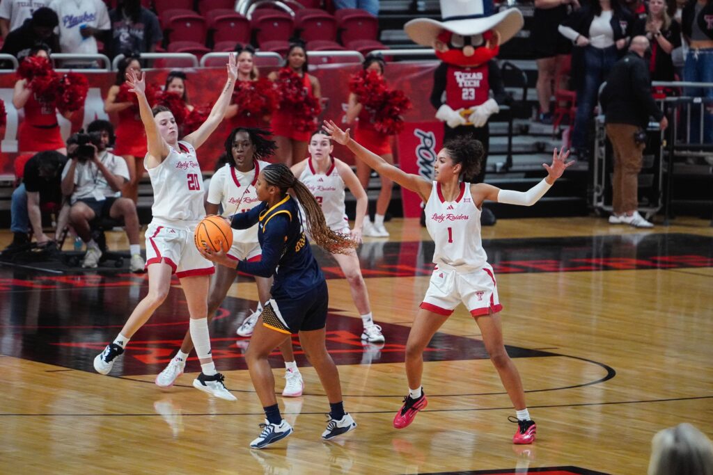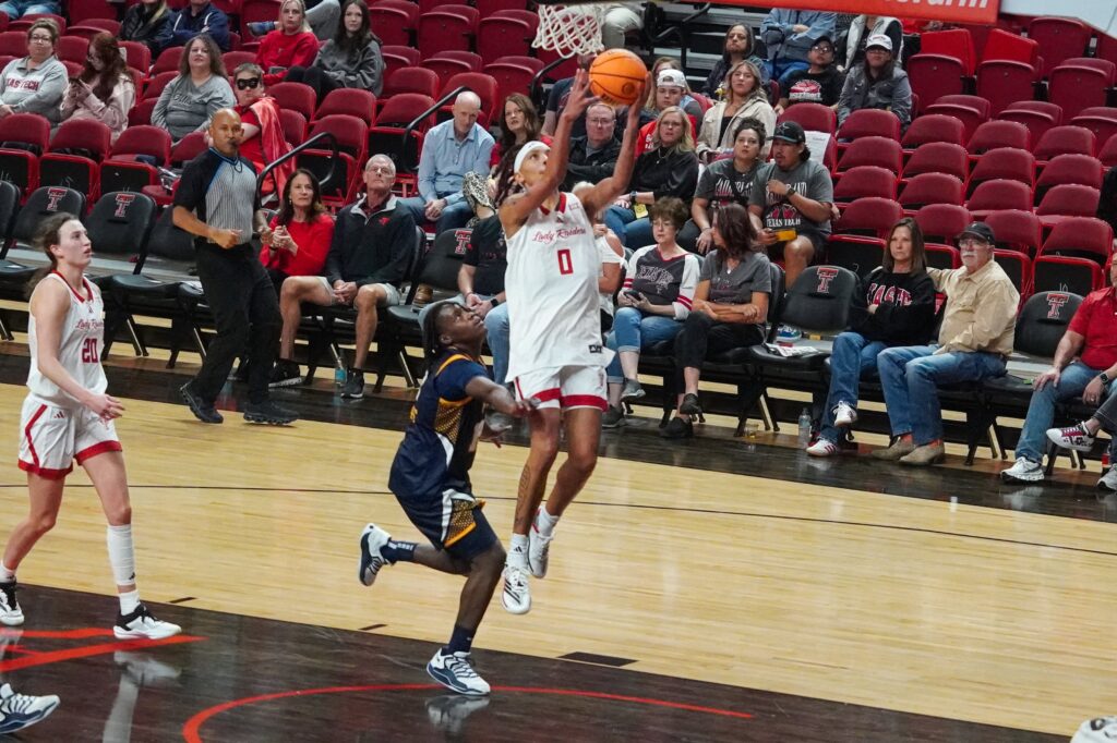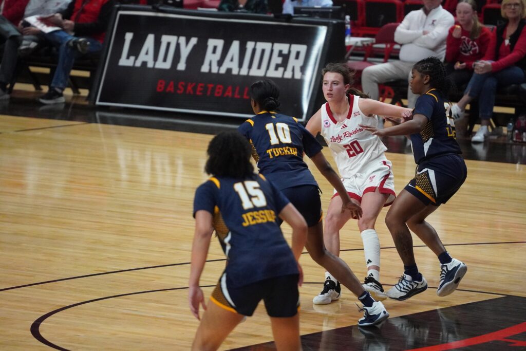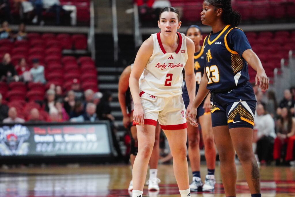 The Lady Raiders’ night as a whole followed its own rhythm. Texas Tech jumped out to a 20–5 first-quarter lead behind a defense that didn’t allow a score until mid-way through the quarter and crisp ball movement on offense. As you’d expect of the reigning CAA champs and preseason picks to win it all again this year, however, NC A&T responded in the second quarter by throwing out matchup zones and disguised defenses that forced Tech into rushed shots and sloppy spacing.