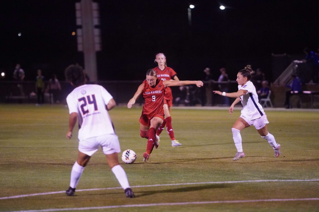 Despite controlling the match, Tech saw UTSA level it in the 61st minute on a long free kick ball from the goalkeeper that carried in the West Texas wind and dipped into the net over the outstretched hand of Faith Nguyen. The moment was stunning for fans, and UTSA’s Kessler alike who went full surrender cobra in shock after her magical moment, but Texas Tech didn’t blink.