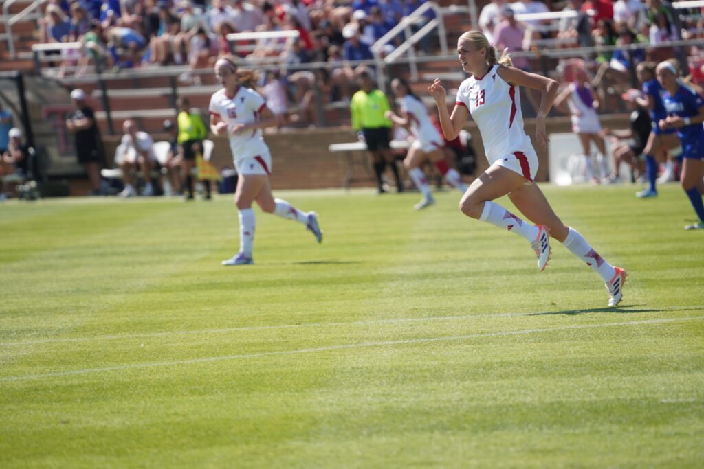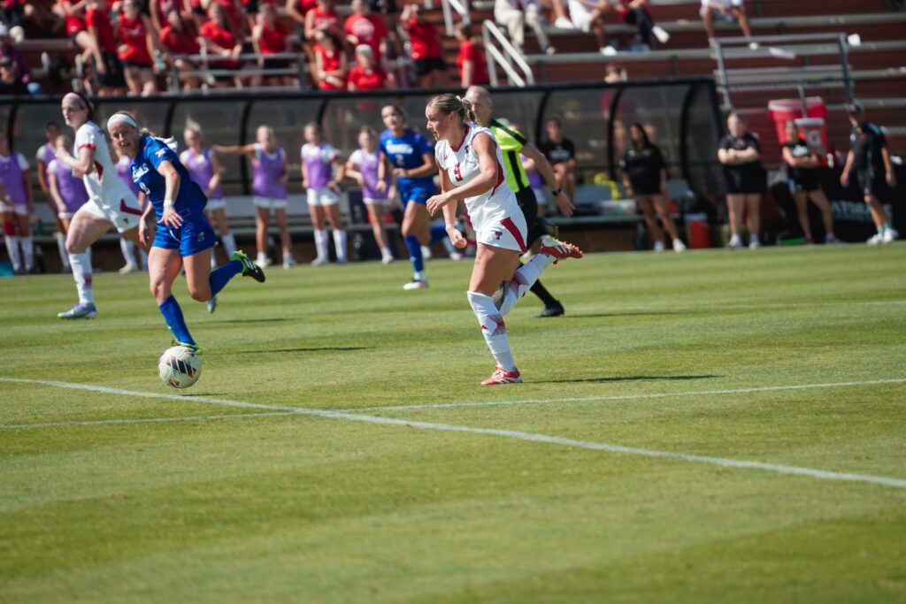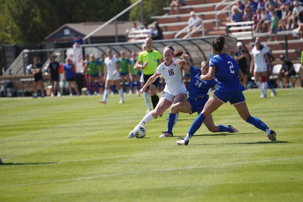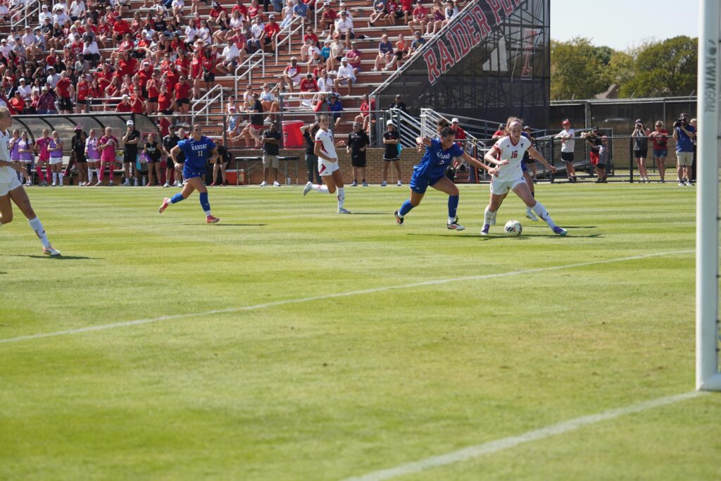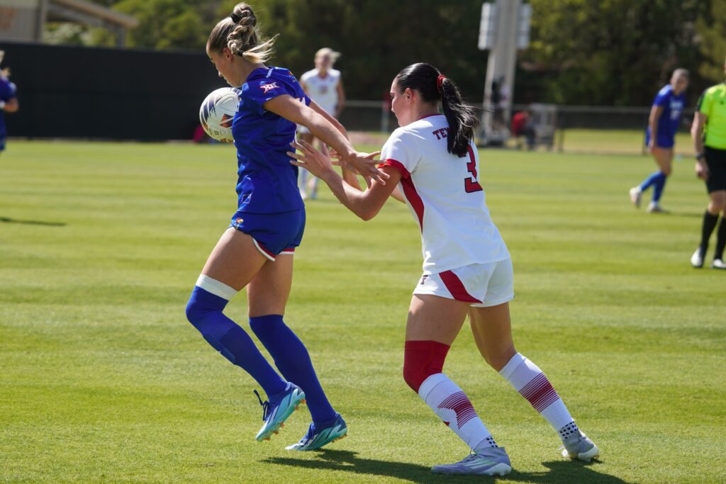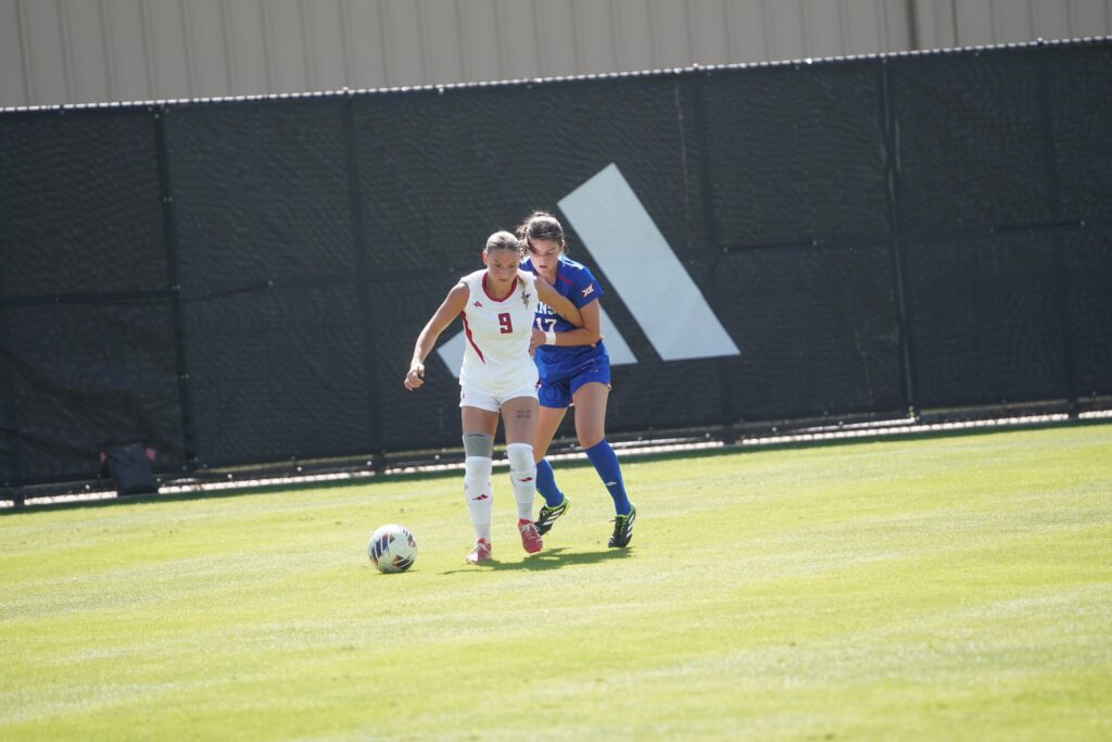 Instead the Red Raiders turned that pressure right back around on the Jayhawks as Tech forwards Zdrojewski and Greason were exhausting the Kansas backline early. A level of effort that was matched when Storie Sexton entered the match as she forced a turnover to the feet of Zdrojewski who ripped a shot to force the Kansas’ keeper into a full-extension save to tip it over the crossbar.