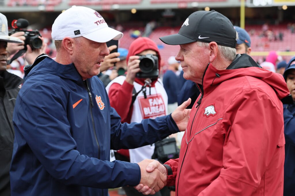 Hugh Freeze is safe for now after Auburn, after the Tigers beat Arkansas 33-24 on Saturday. The Tigers rattled off 17 unanswered points in the fourth quarter thanks to a pick-six from defensive back Rayshawn Pleasant, followed by a two-point conversion and three field goals. It was a field goal fest for Auburn as kicker Alex McPherson converted all six of his field goal attempts. Auburn’s lone offensive touchdown came from receiver Cam Coleman in the first quarter as quarterback Jackson Arnold was limited to just 73 passing yards.