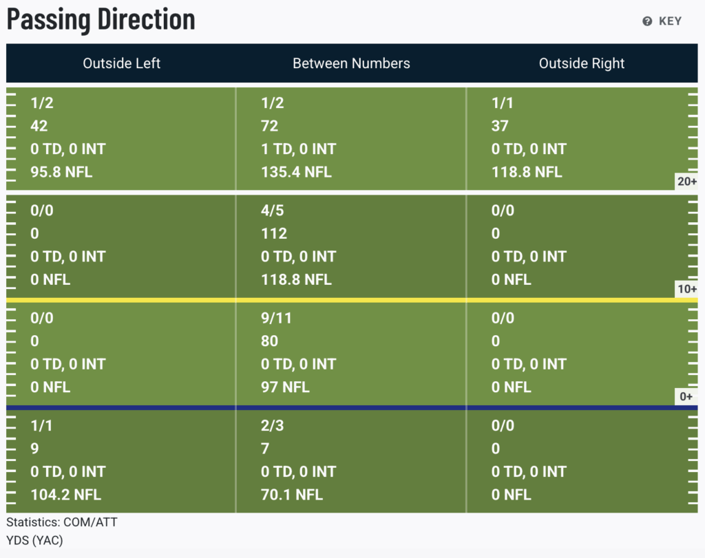 | PASSING PRESSURE | Kept Clean | Under Pressure | Not Blitzed | When Blitzed |
