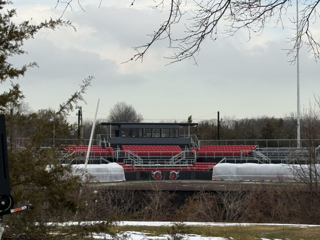 According to the announcement, the renovations included the addition of lights to the field alongside new dugouts, a grandstand including both chair-back and bleacher seating, new sound system and finally a press box with a dedicated broadcast booth.