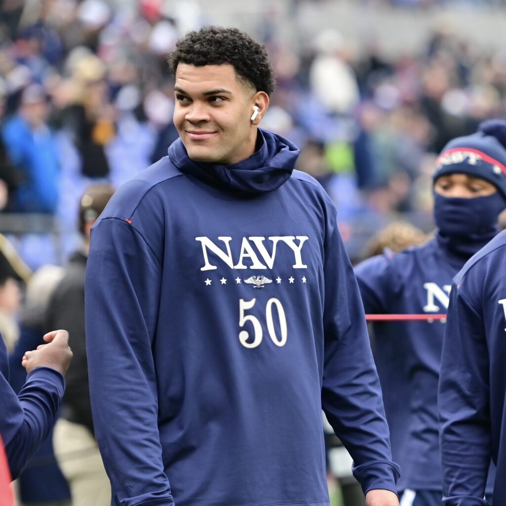 Navy freshman Malcolm Johnson, #50, OT from South Jordan UT