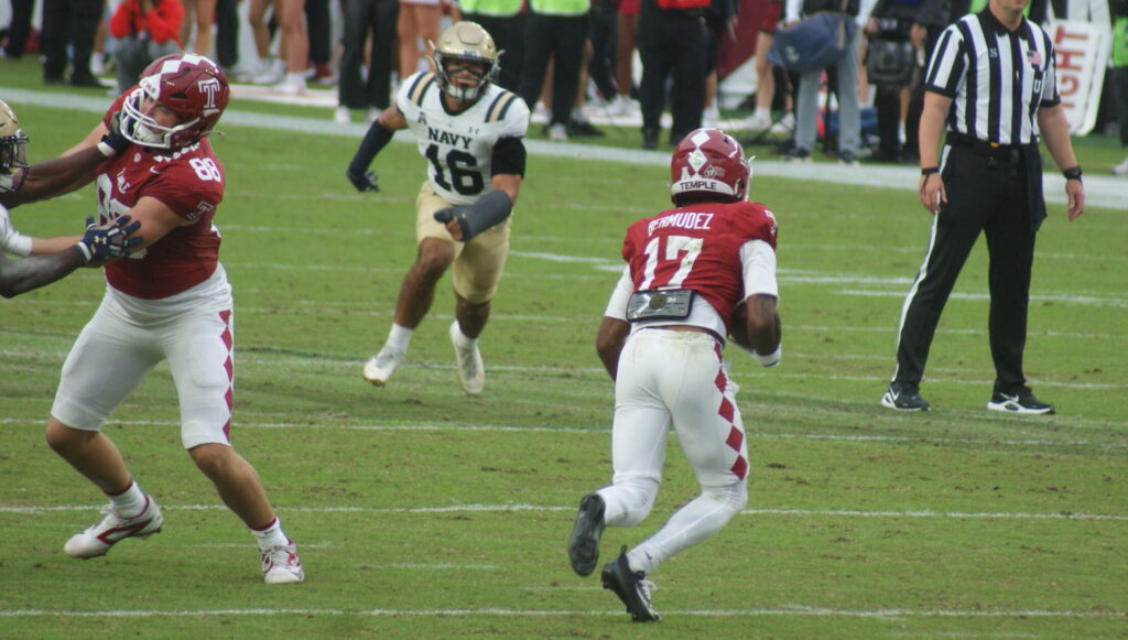 "You know, he’s not maybe that guy who’s going to shake you and take it for 80, but boy, he’s athletic and he throws the ball really well.” Temple...