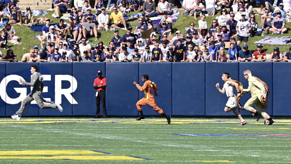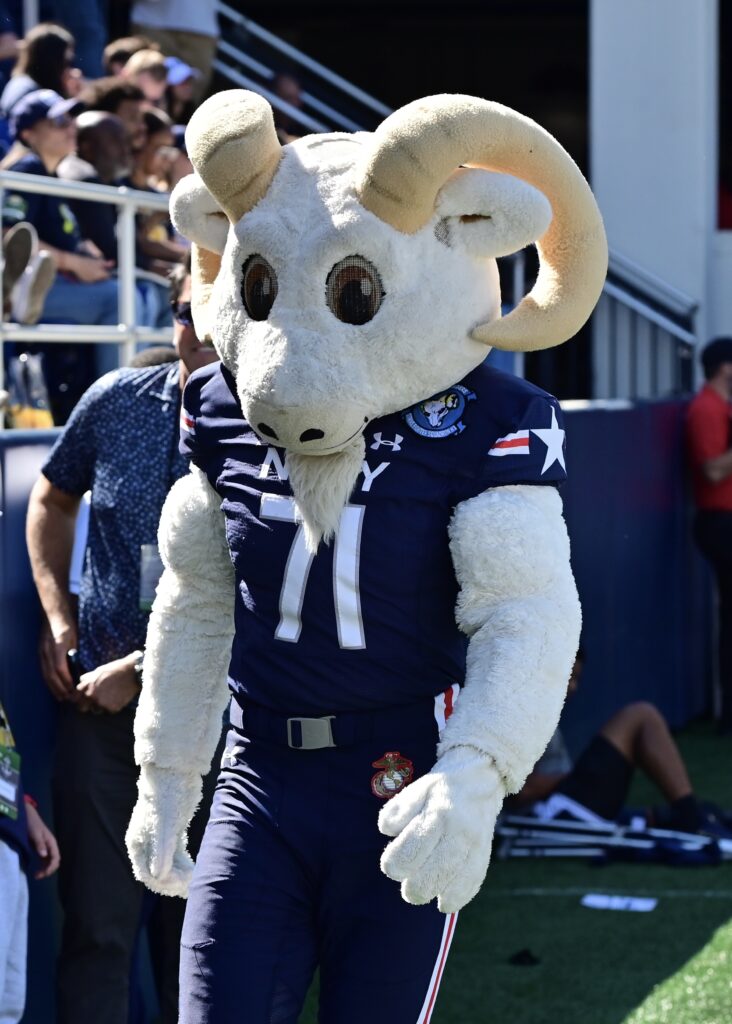 Navy’s Bill the Goat walks the sideline to keep the fans entertained.
