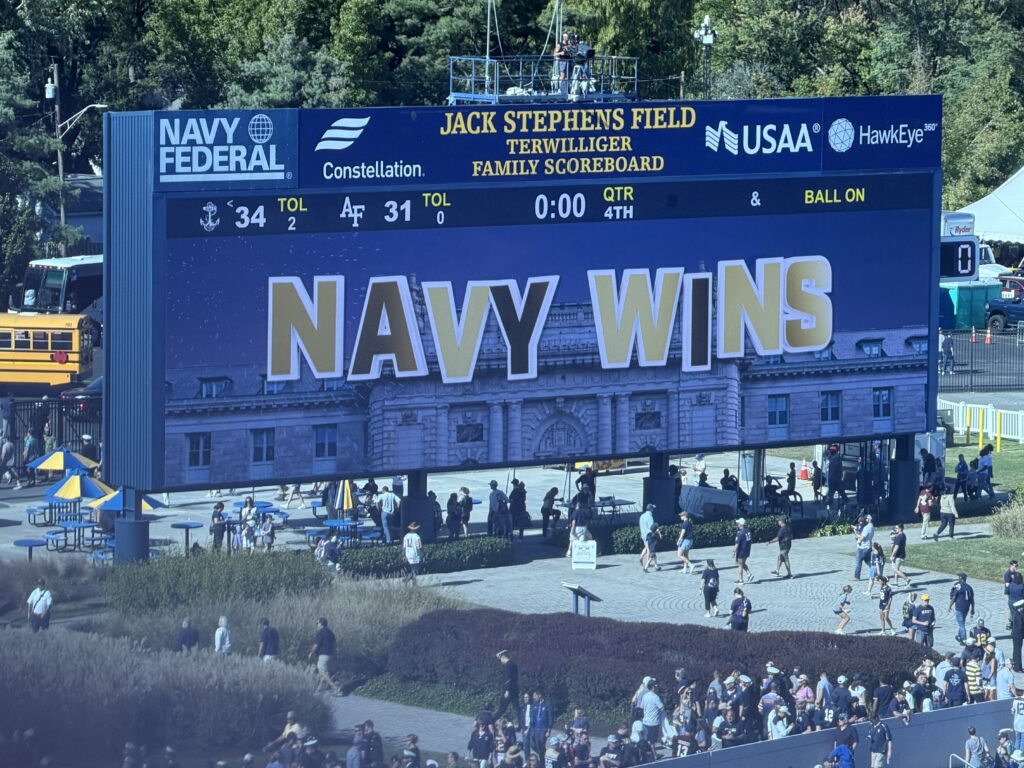 Photos of the team leaving the field at halftime of the Navy vs Air Force game on October 4, 2025, as seen through the lens of staff photographer Alison Althouse. Final Score was Navy 34, Air Force 31.