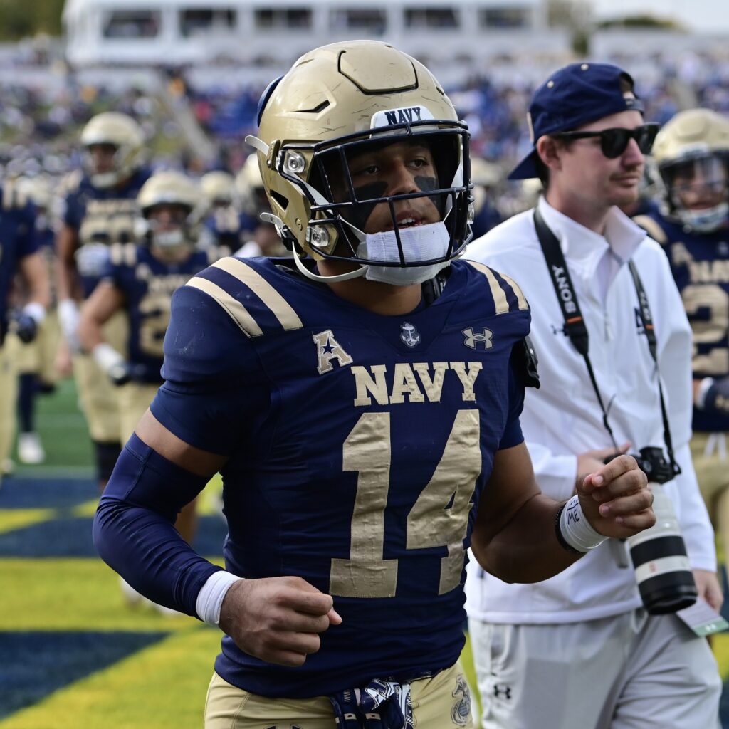 Photos of the team as they head to the locker room for halftime of the Navy vs FAU game on October 25, 2025, as seen through the lens of staff photographer Alison Althouse.
