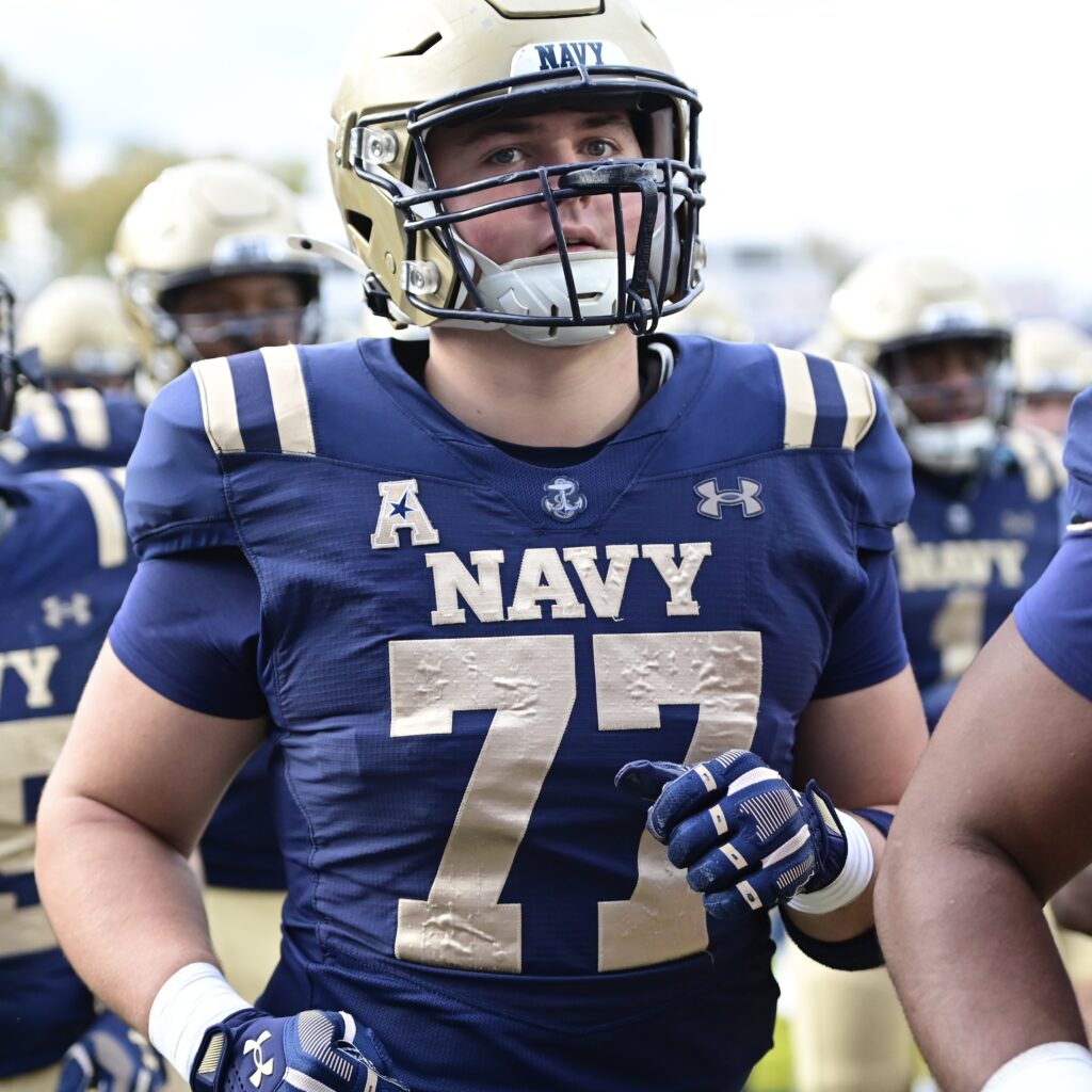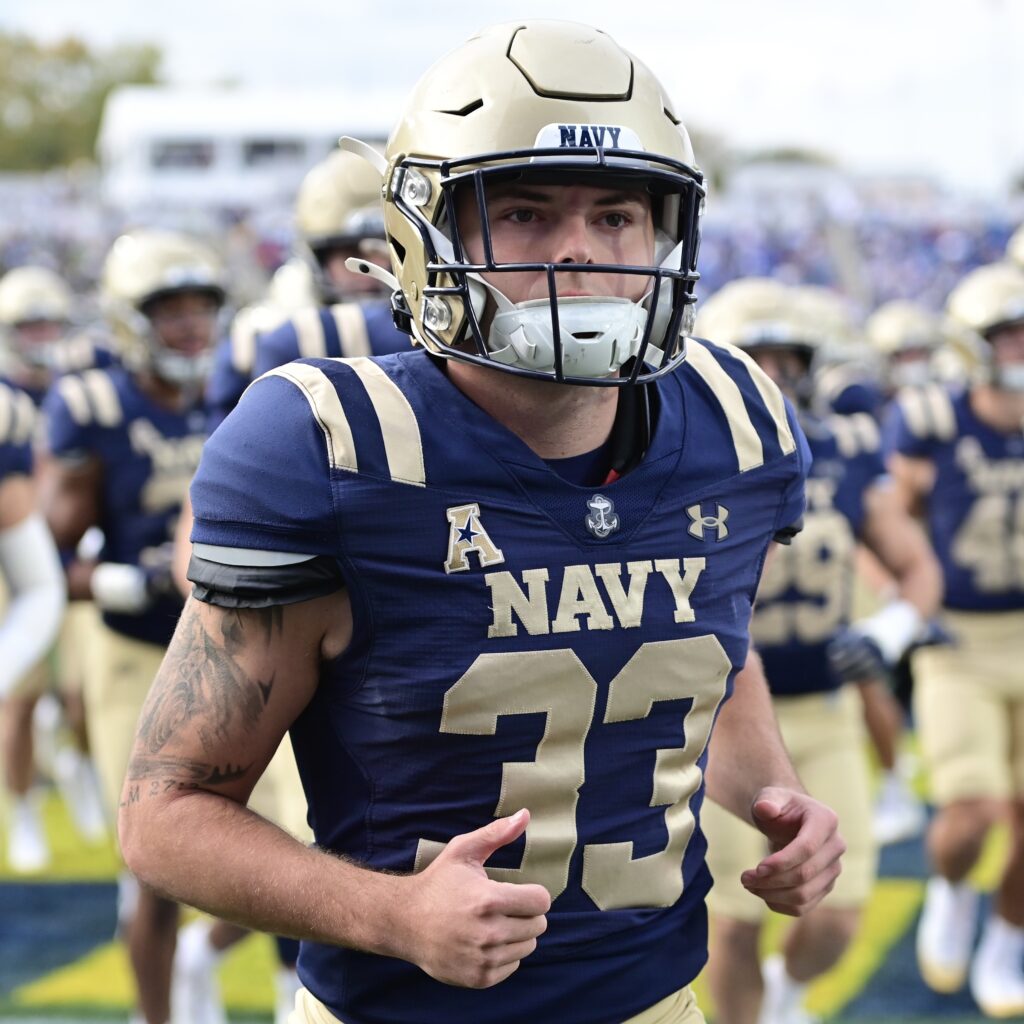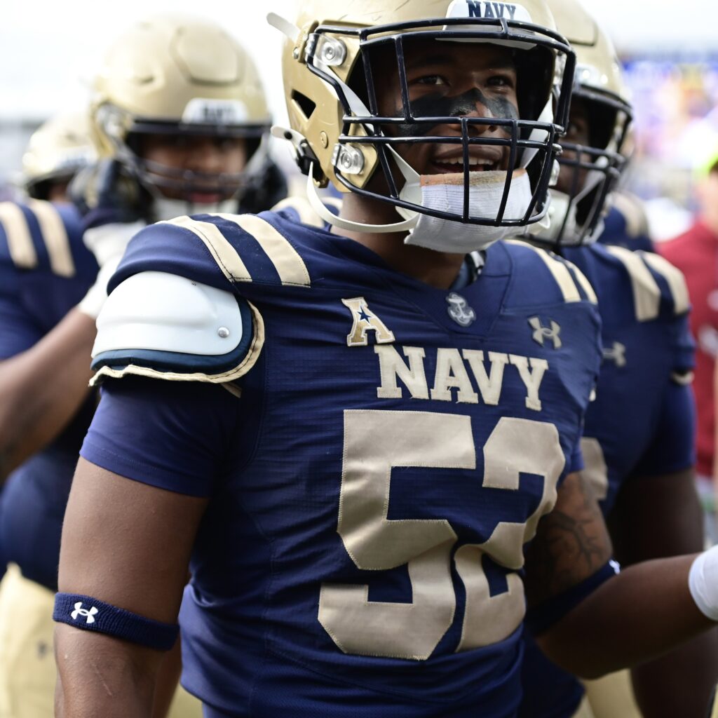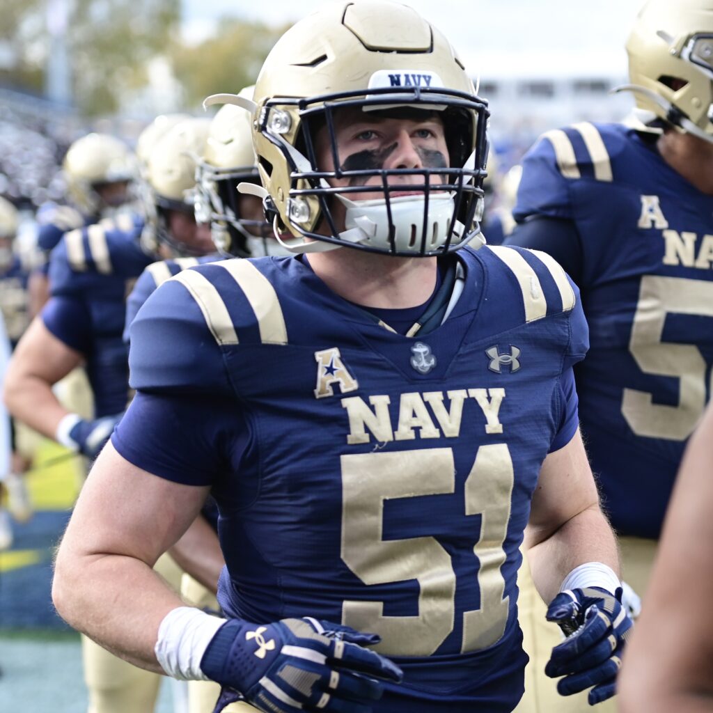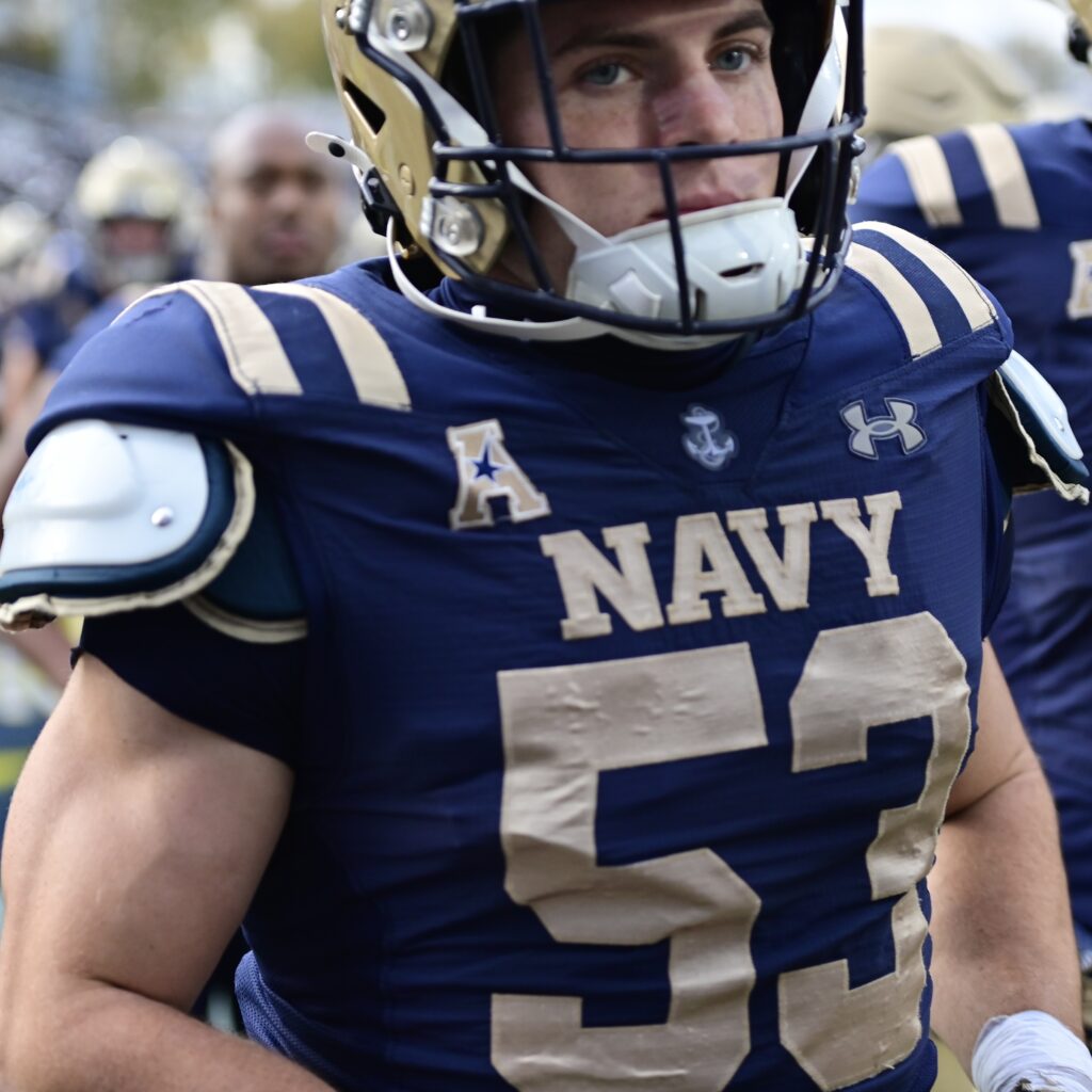 Navy junior Marcus Bleazard, #53, LB from Kennesaw GA