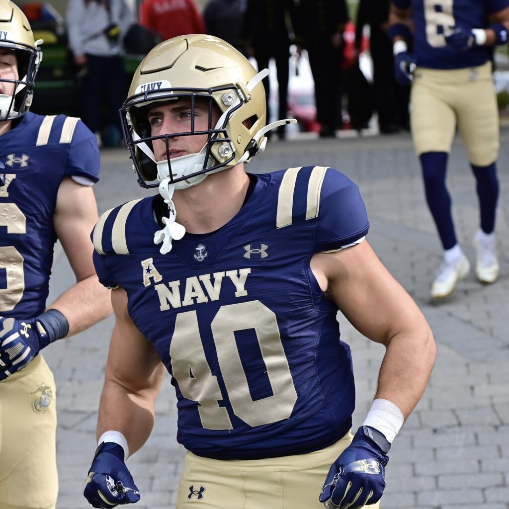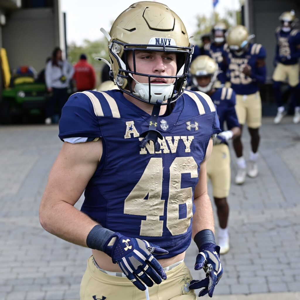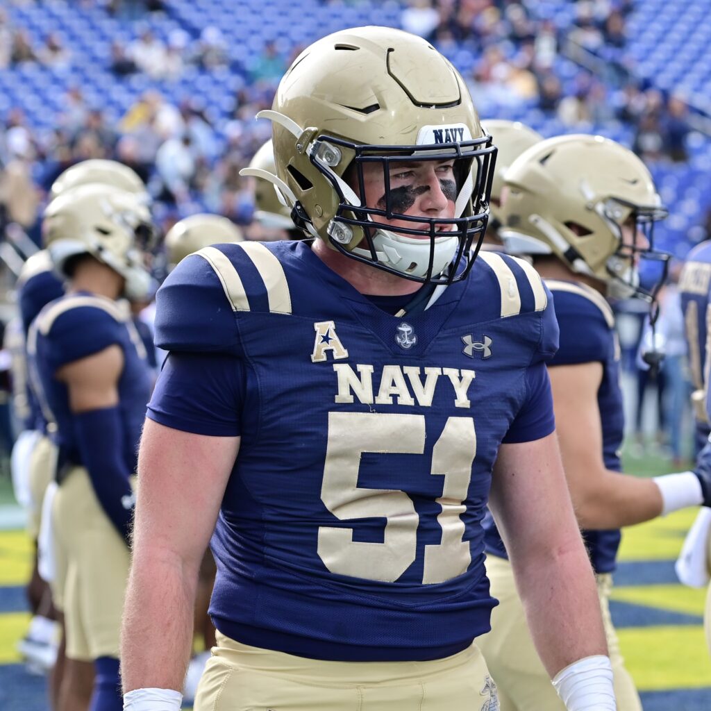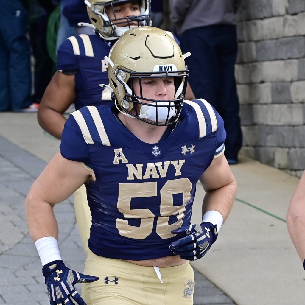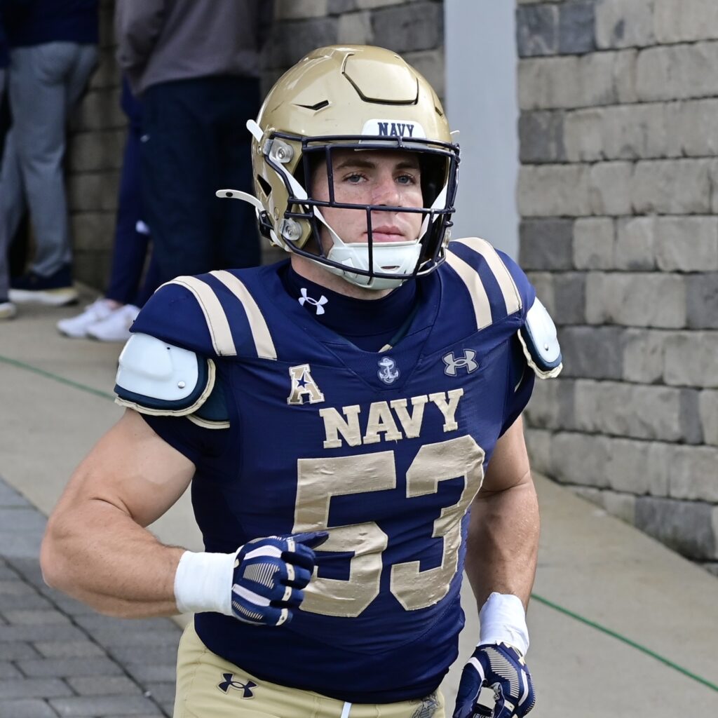 Navy junior Marcus Bleazard, #53, LB from Kennesaw GA