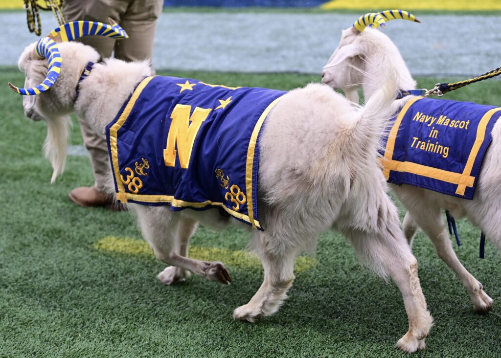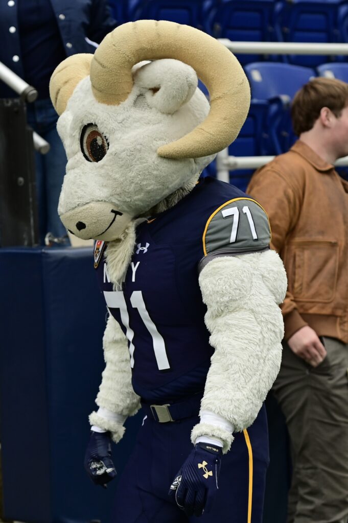 Navy’s Bill the Goat waits for the Brigade to arrive for the pregame march on.