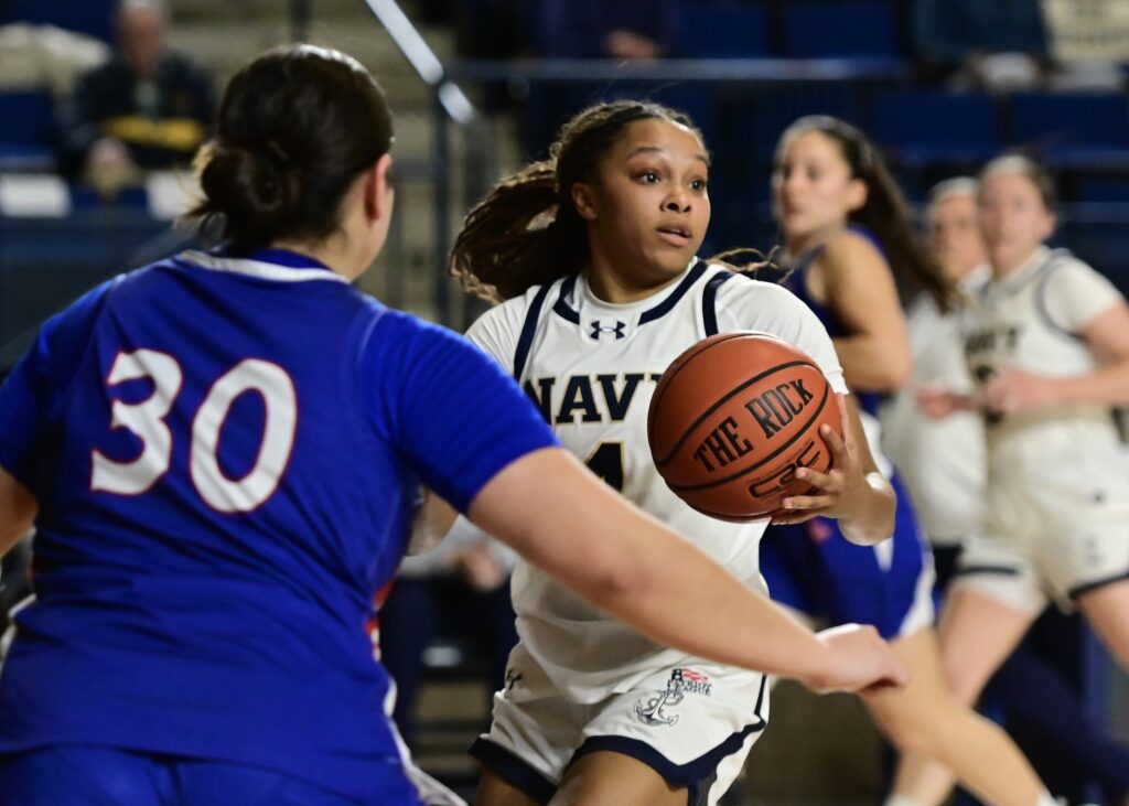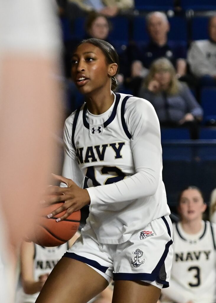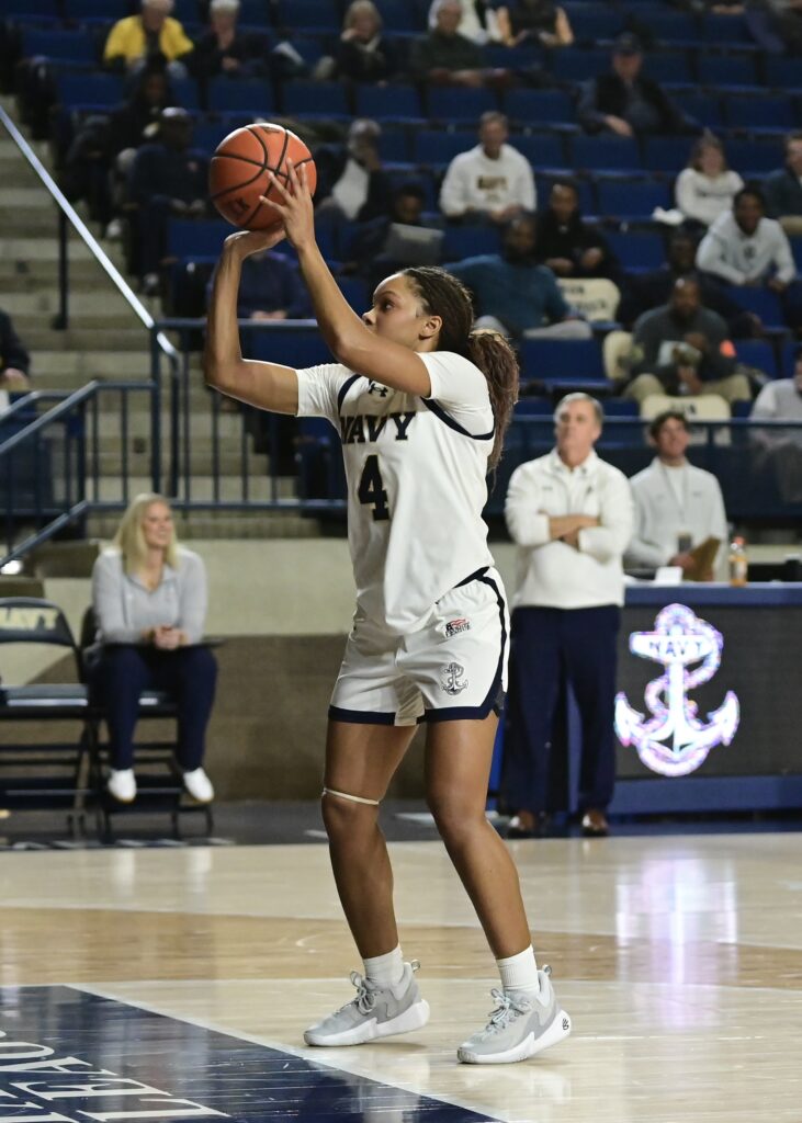 Photos from the third quarter of the Navy Womens Basketball 86-68 win over American on Wednesday, January 14, 2026, as seen through the lens of staff photographer Alison Althouse.