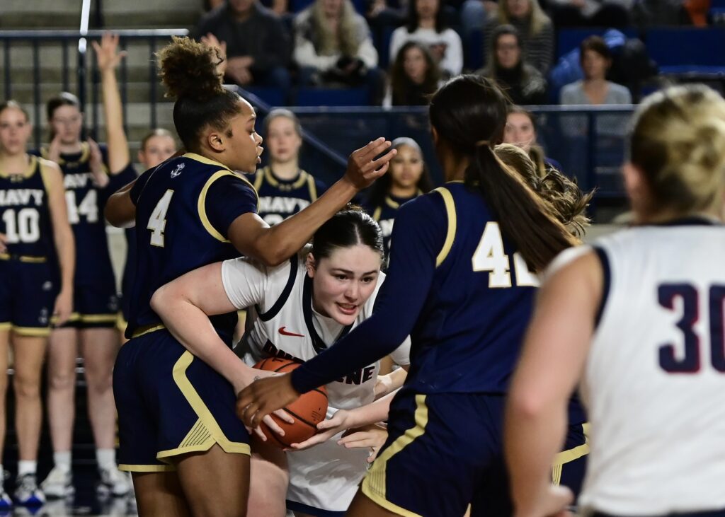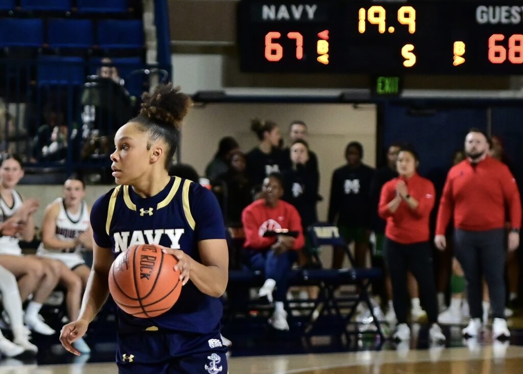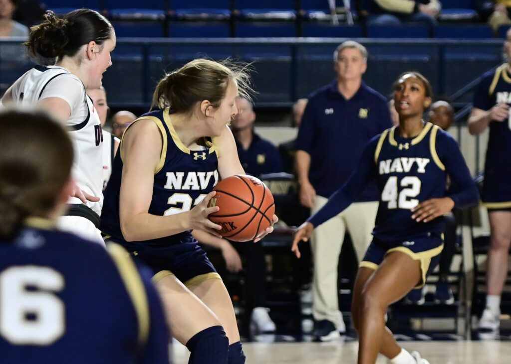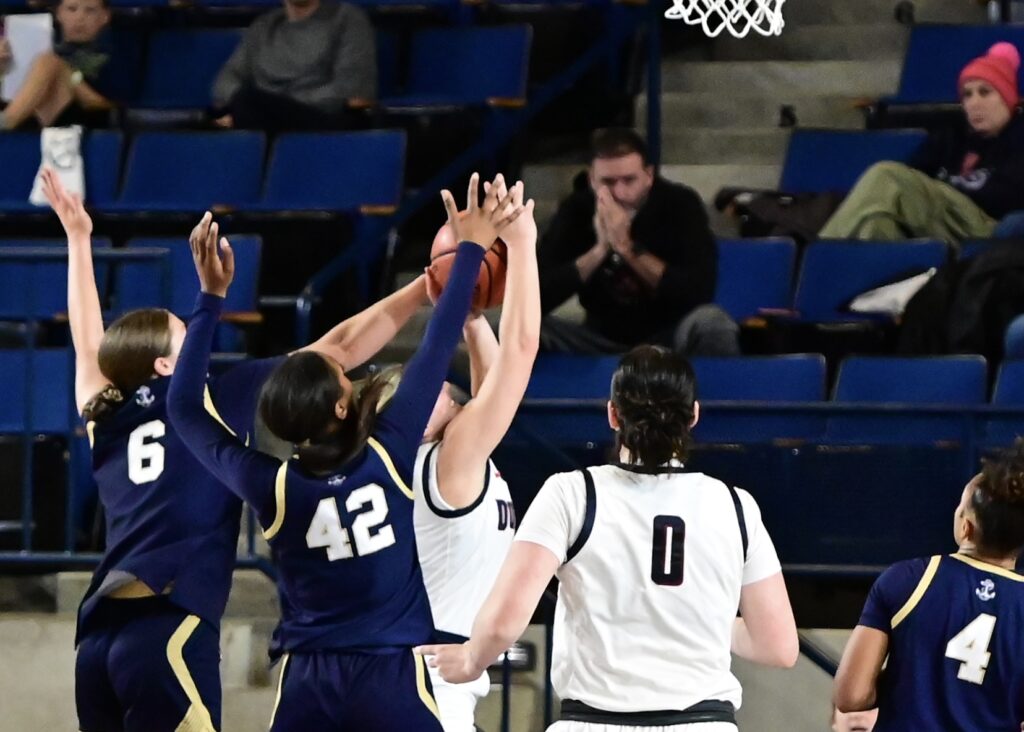 Photos from the overtime period of the Navy Womens Basketball 69-67 OT loss to Duquesne on Sunday, November 30, 2025, as seen through the lens of staff photographer Alison Althouse.
