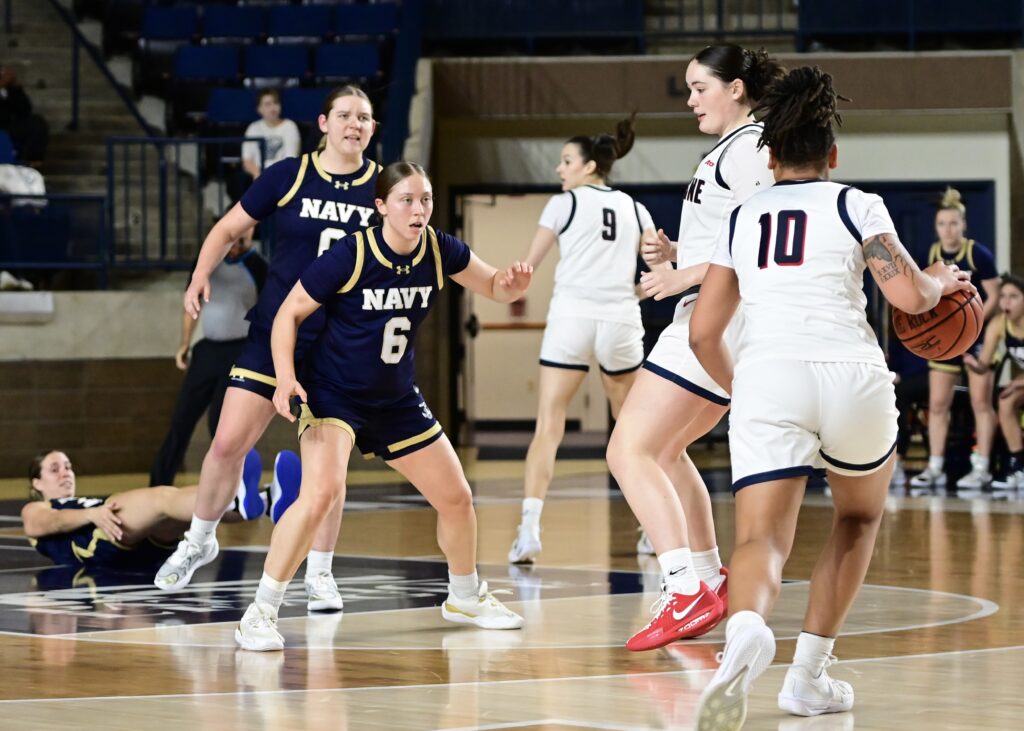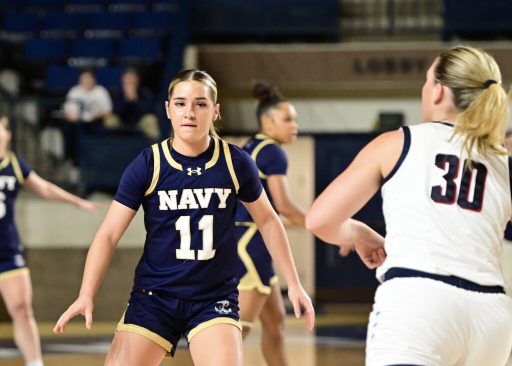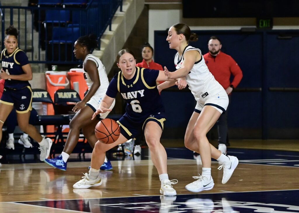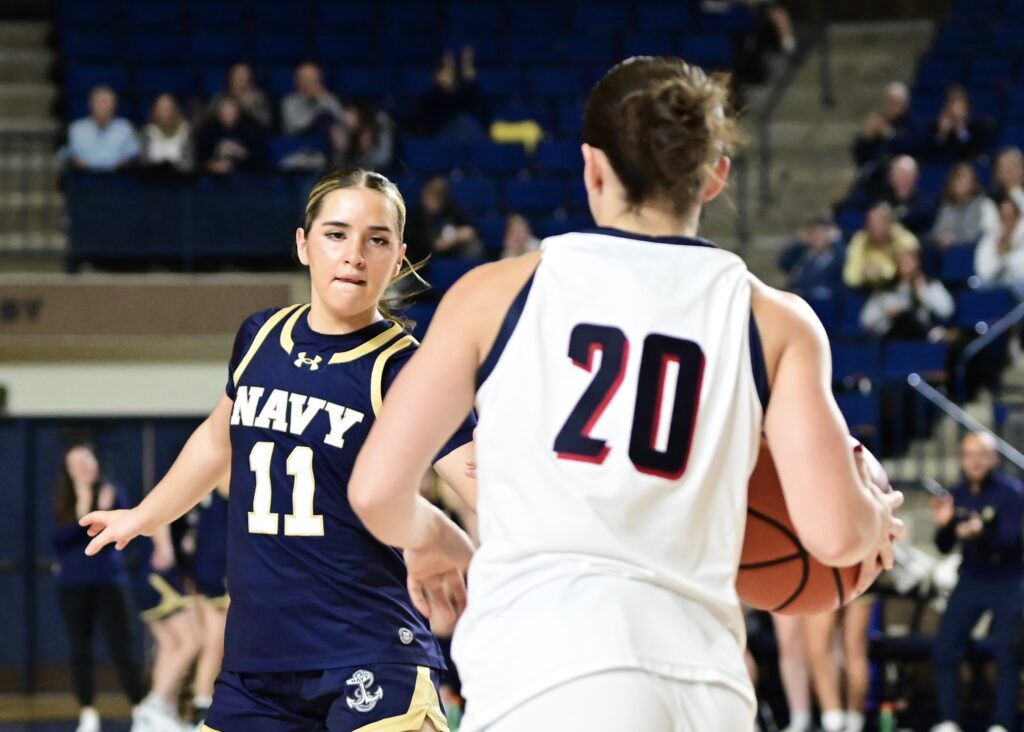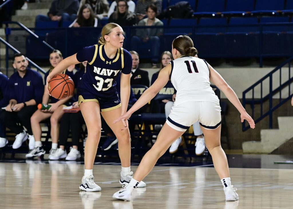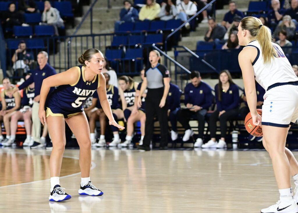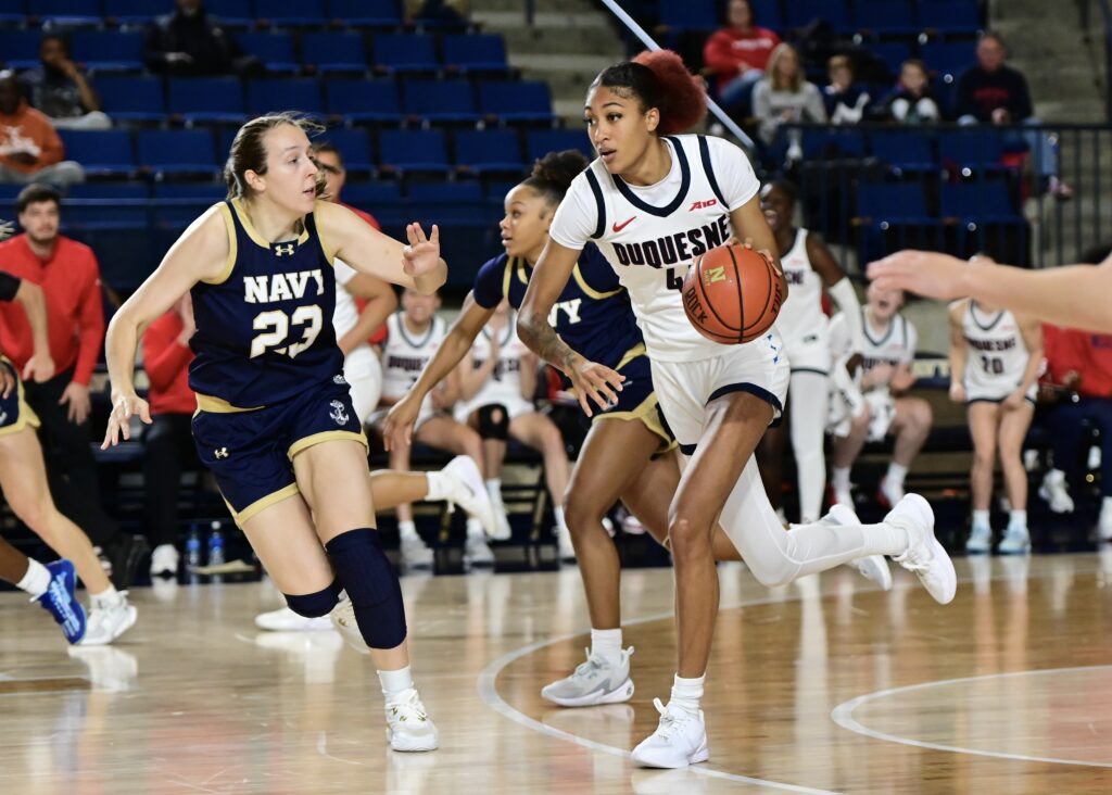 Photos from the first half of the Navy Womens Basketball 69-67 OT loss to Duquesne on Sunday, November 30, 2025, as seen through the lens of staff photographer Alison Althouse.