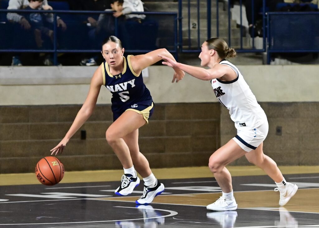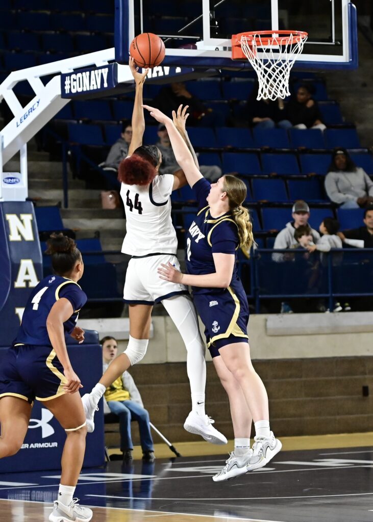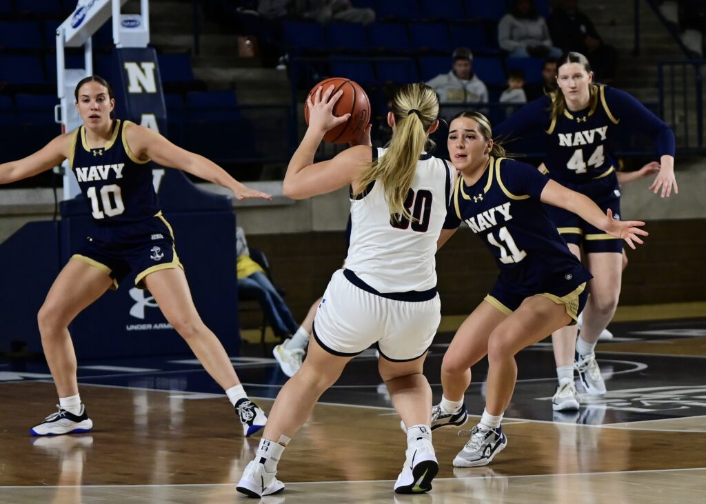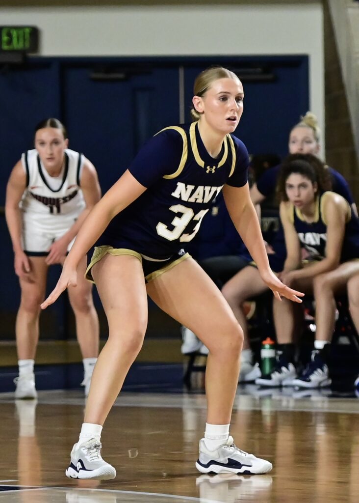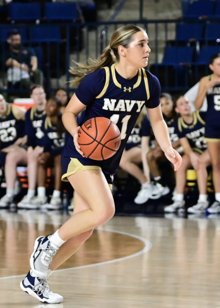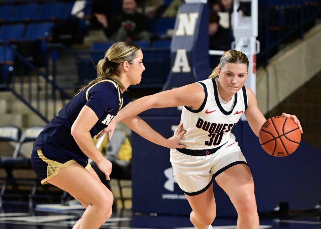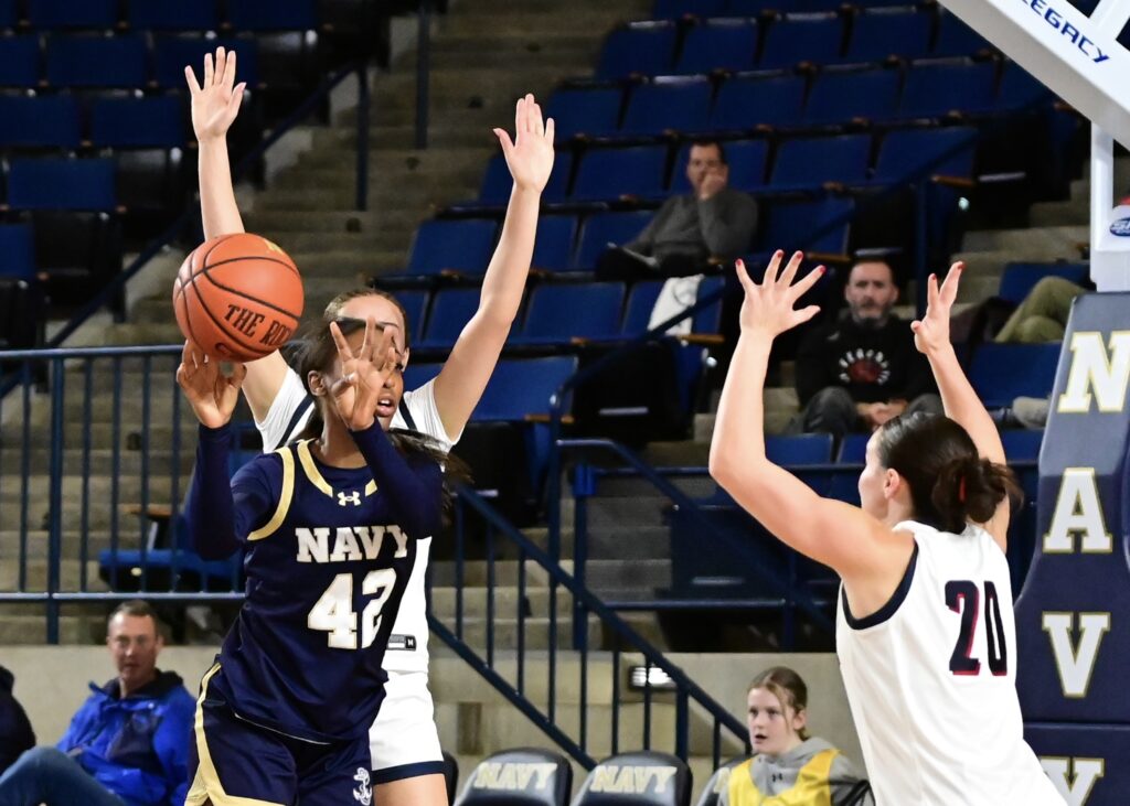Photos from the first half of the Navy Womens Basketball 69-67 OT loss to Duquesne on Sunday, November 30, 2025, as seen through the lens of staff photographer Alison Althouse.