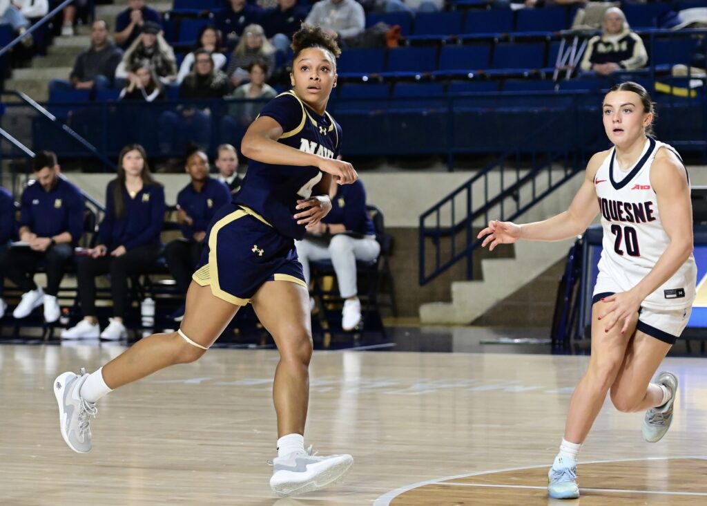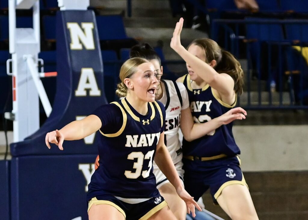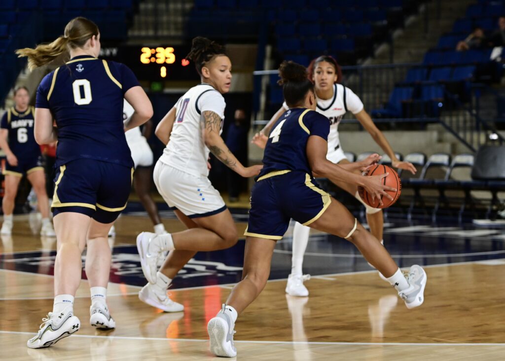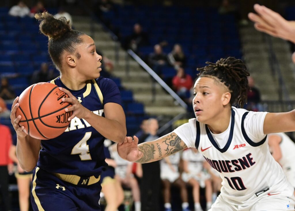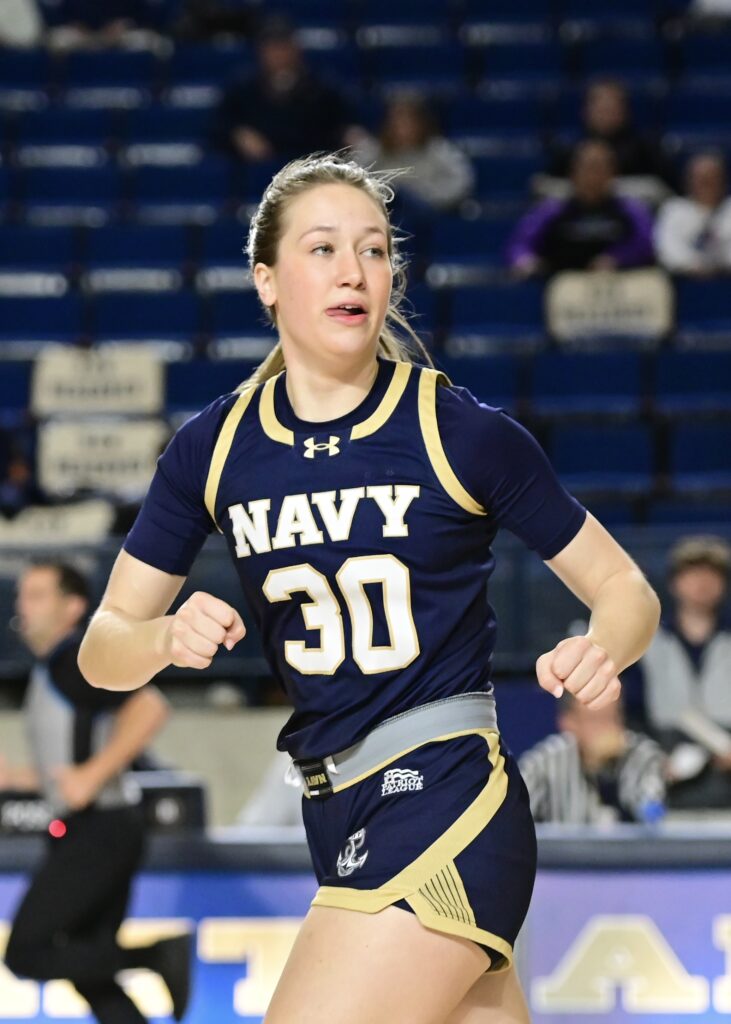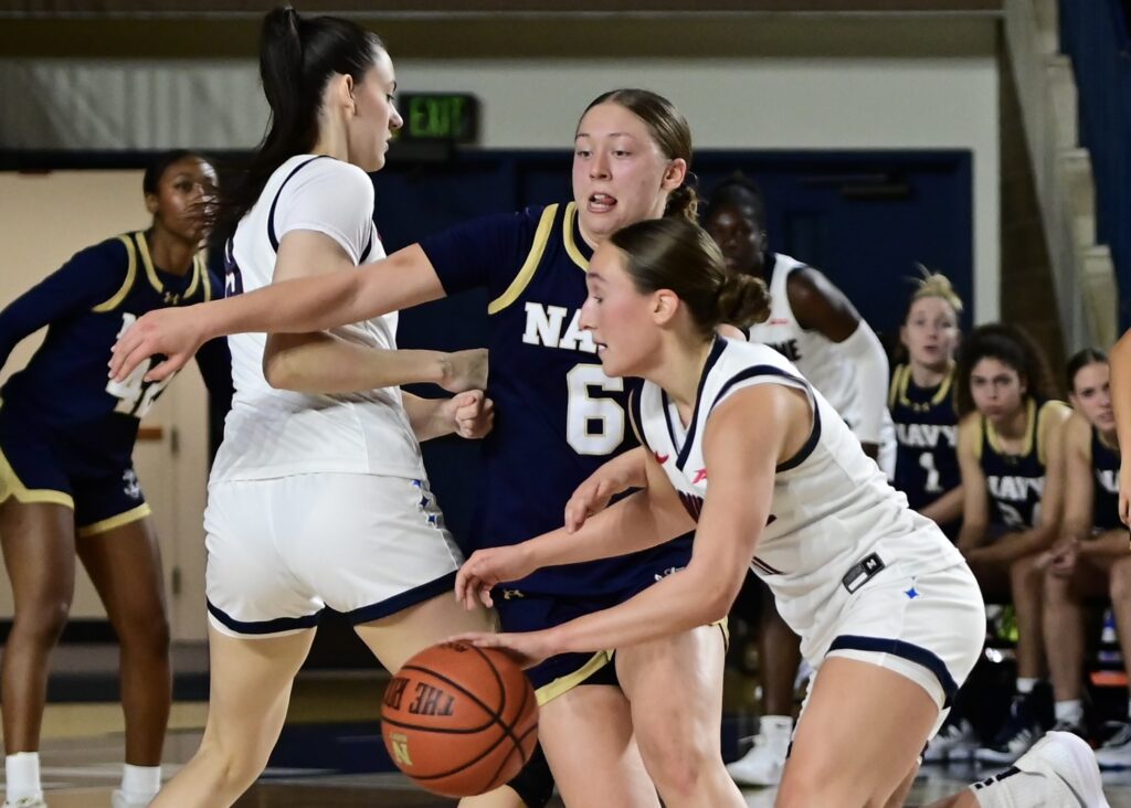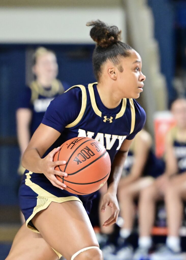 Photos from the first half of the Navy Womens Basketball 69-67 OT loss to Duquesne on Sunday, November 30, 2025, as seen through the lens of staff photographer Alison Althouse.