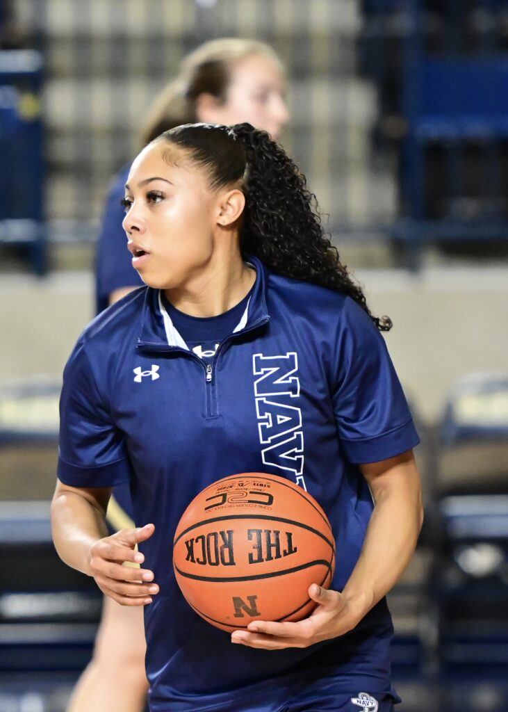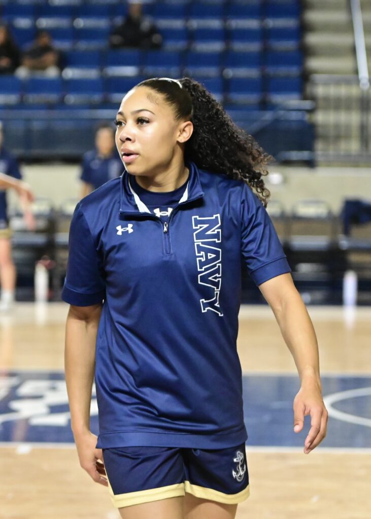 Navy’s Nia Henley, #25, sophomore G from Spotsylvania PA