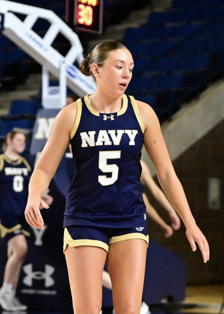 Navy’s Mary Gibbons, #5, sophomore G from Holden MA