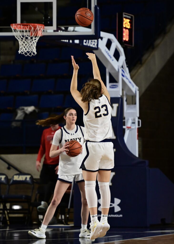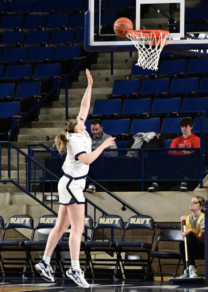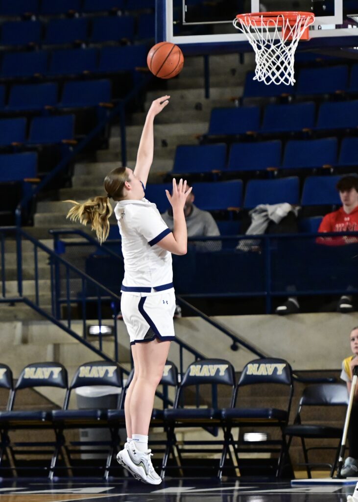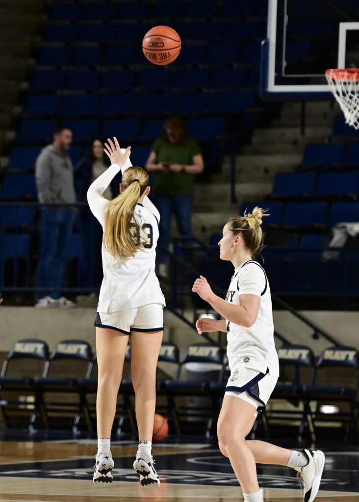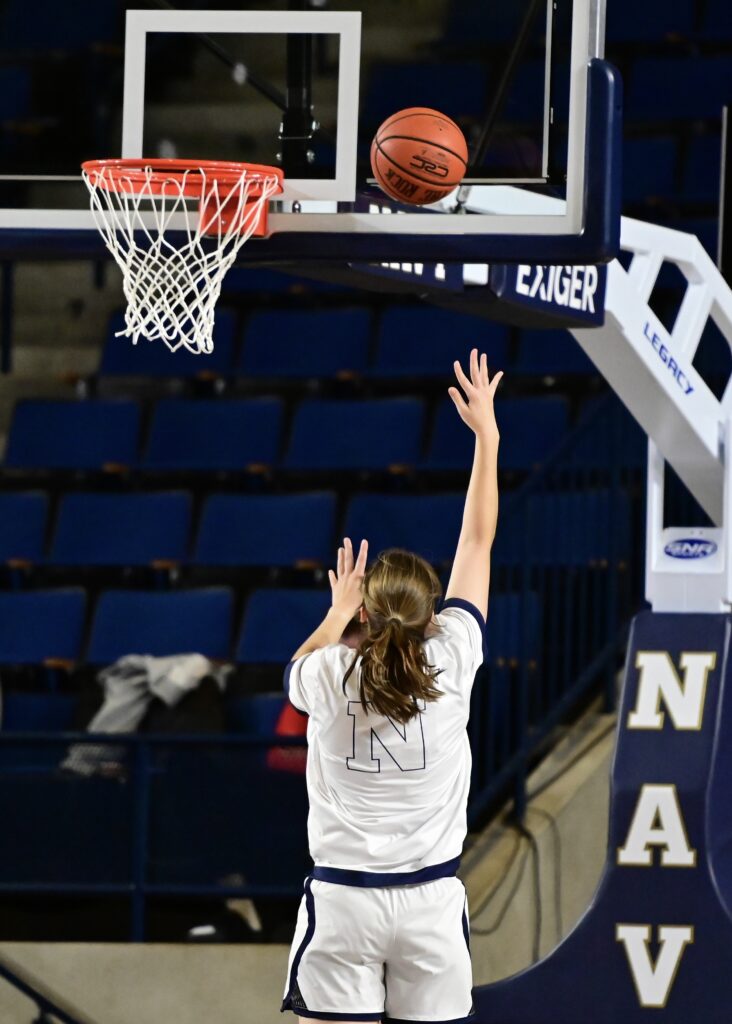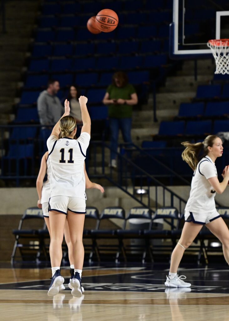 Pregame warmup photos from the Navy Womens Basketball game vs the Manhattan Jaspers on Saturday, November 29, 2025, as seen through the lens of staff photographer Alison Althouse.