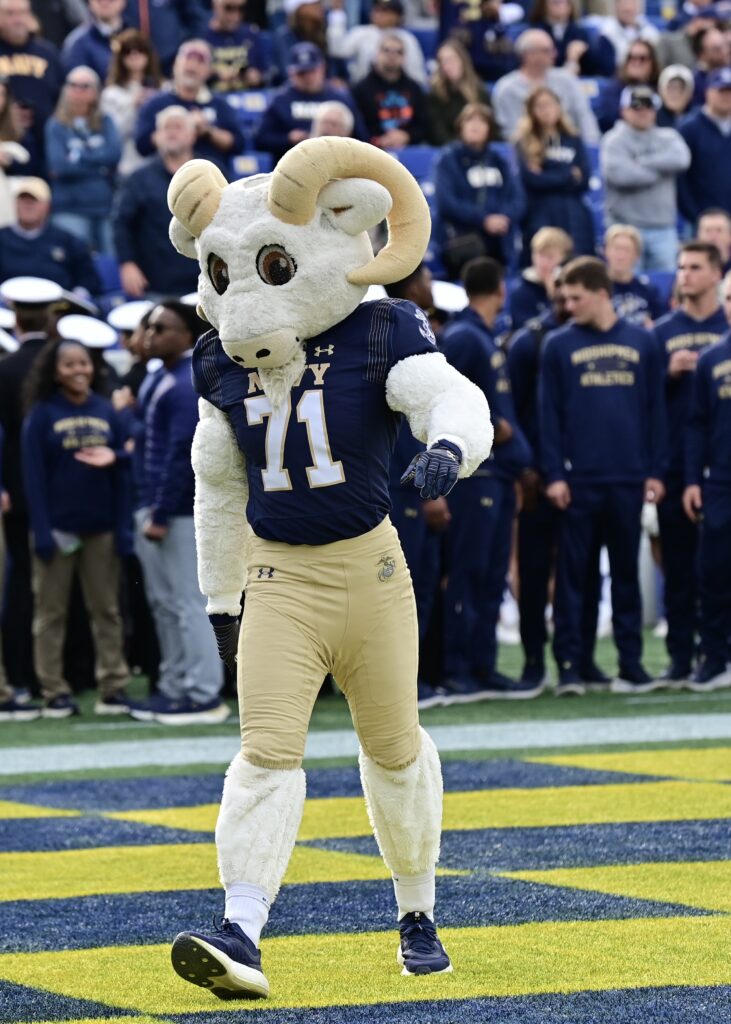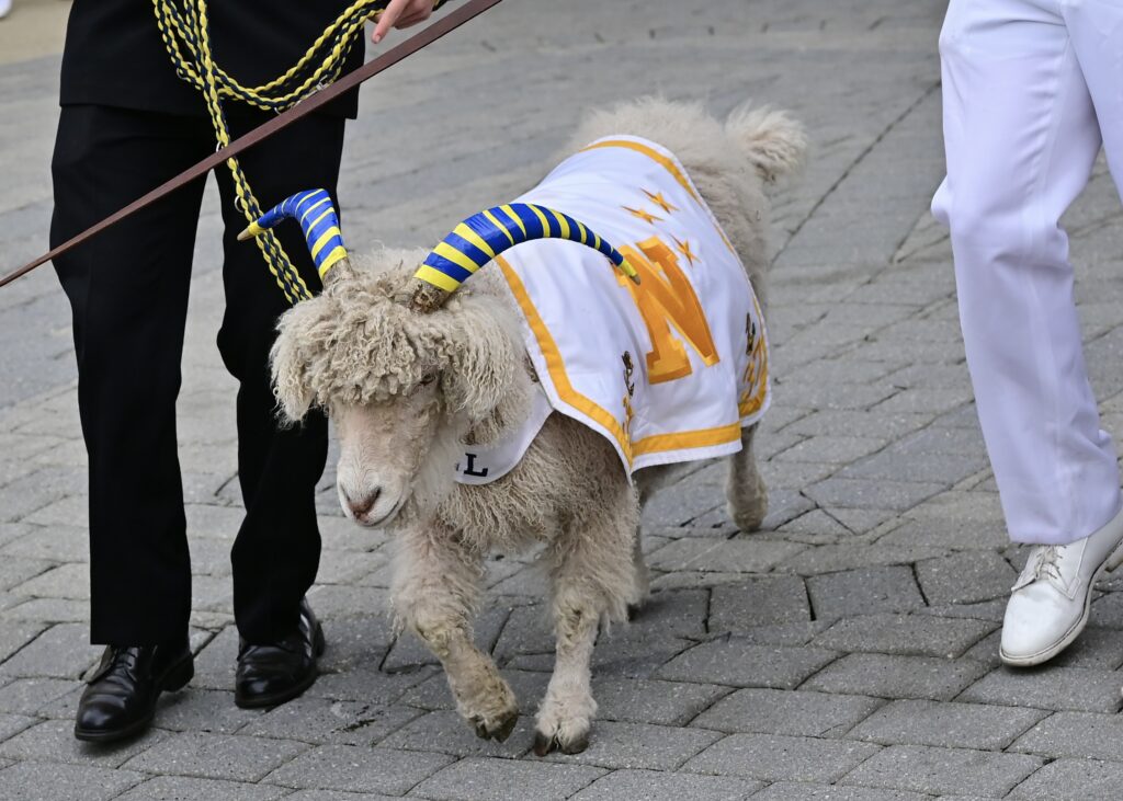 Navy’s Bill the Goat gets ready to join the team as they run onto the field.