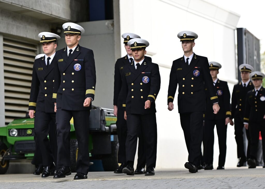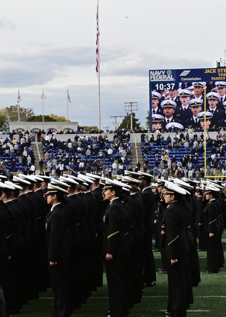 The Brigade of Midshipmen enter the field for the gameday MarchOn.