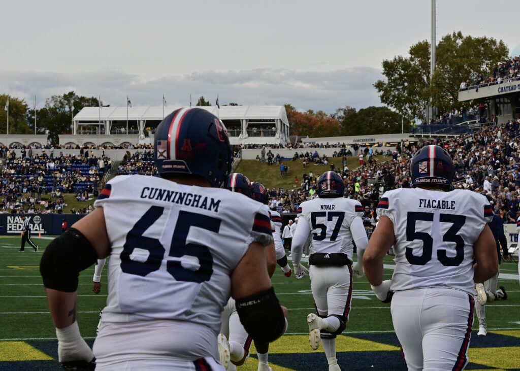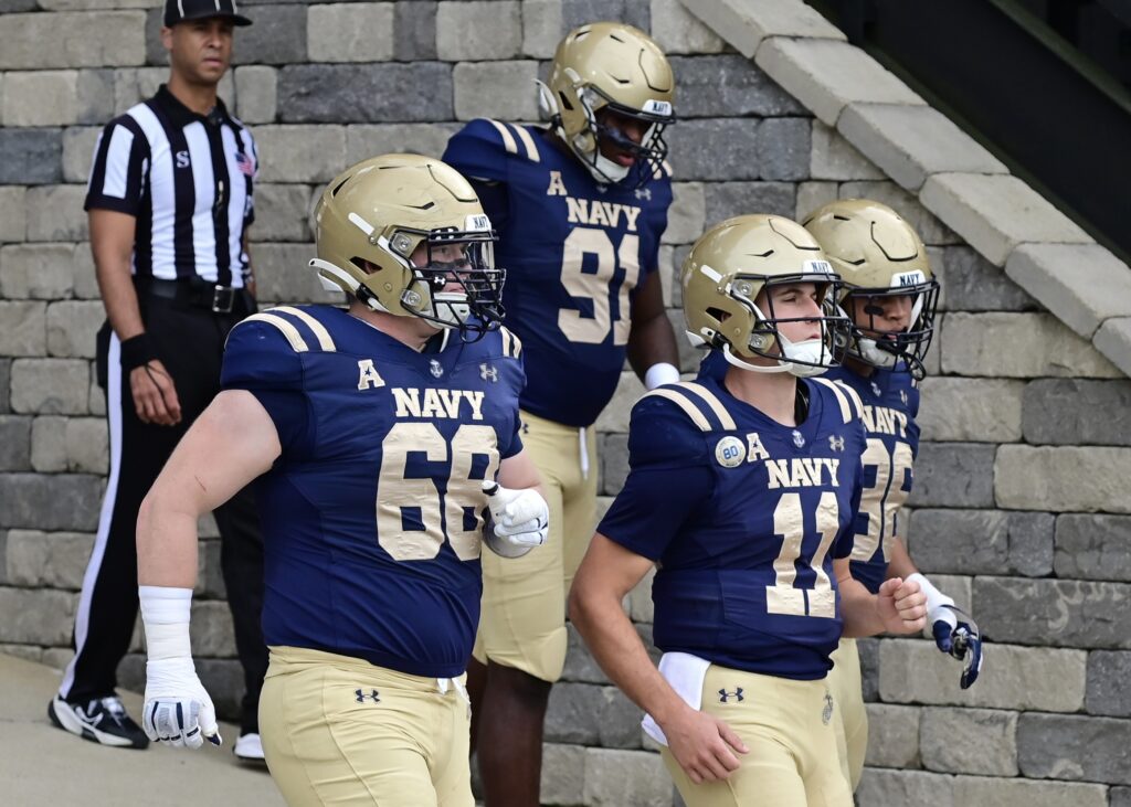 Navy’s GameDay Team Captains (L-R): #68 Ben Purvis, #91 Chreign LaFond, #11 Blake Horvath, and #96 Landon Robinson