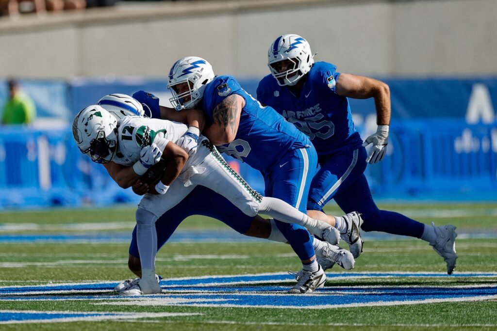 In some ways, the Falcons’ defense is the same as ever. Up front, fifth-year senior Payton Zdroik is one of the better nose guards Navy will line up against this season. He had four tackles, a TFL, and two QB hurries against Hawaii last week to back up his preseason Lombardi Trophy watch list selection. Defensive tackle Daniel Grobe is also back after starting seven games in 2024. At 6-7, 270, he presents an unusual physical challenge for offenses to overcome. Linebacker Blake Fletcher is seventh in the country with 10.5 tackles per game. Fellow linebacker Isaac Hubert is #2 nationally in TFLs per game, averaging 1.75. Sounds like an Air Force defense, right?