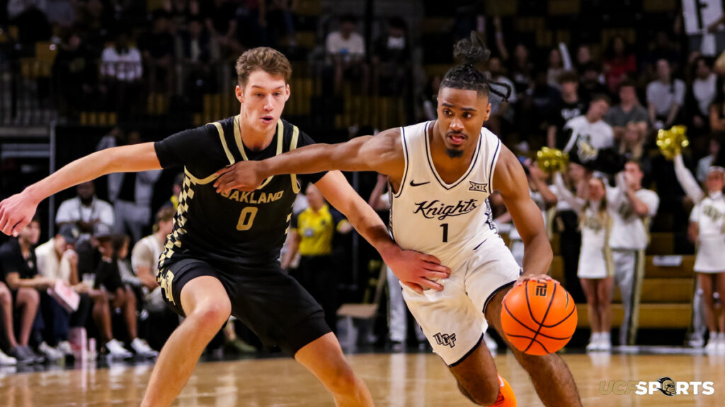 By halftime, UCF led 44–40, despite Oakland knocking down six threes in the opening 20 minutes.