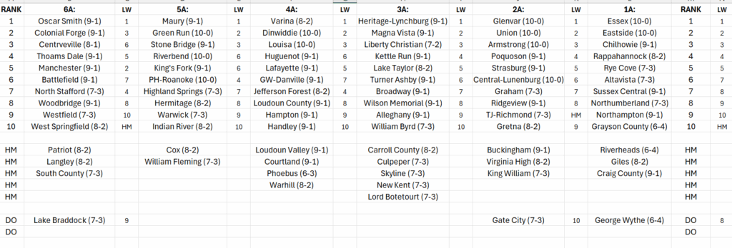 VHSL Football Top Tens - Entering 2025 Playoffs