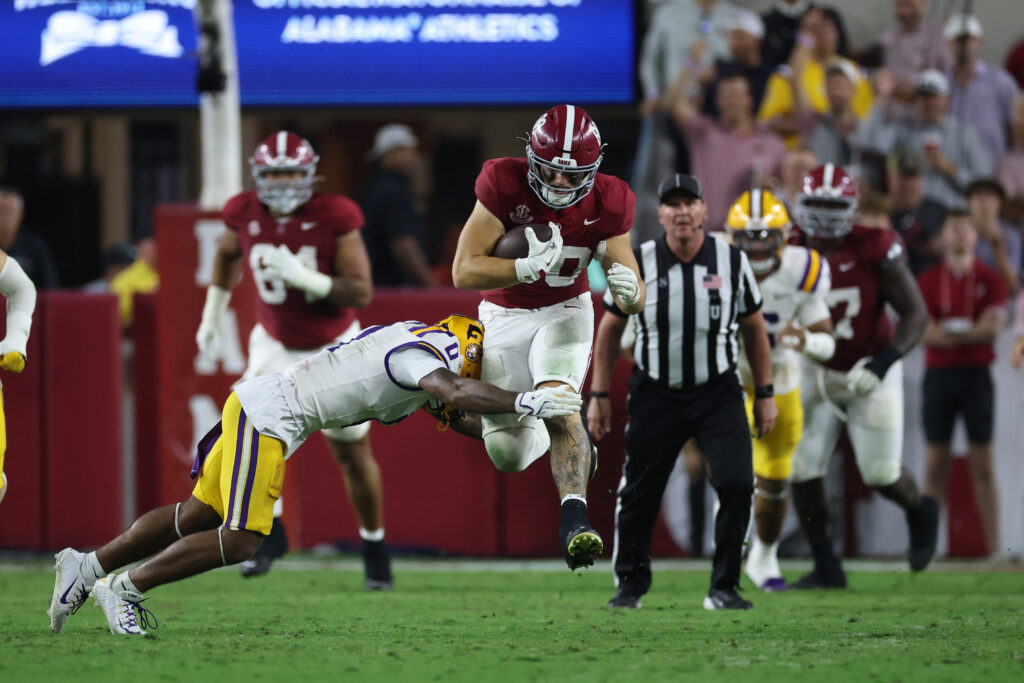 Alabama Wide Receiver Cole Adams (7) in action against LSU at Bryant-Denny Stadium in Tuscaloosa, AL on Saturday, Nov 8, 2025.Quarterback Ty Simpson (15) in action against LSU at Bryant-Denny Stadium in Tuscaloosa, AL on Saturday, Nov 8, 2025.Kicker Conor Talty (31) in action against LSU at Bryant-Denny Stadium in Tuscaloosa, AL on Saturday, Nov 8, 2025.Quarterback Ty Simpson (15) in action against LSU at Bryant-Denny Stadium in Tuscaloosa, AL on Saturday, Nov 8, 2025.Tight End Josh Cuevas (80) in action against LSU at Bryant-Denny Stadium in Tuscaloosa, AL on Saturday, Nov 8, 2025.Wide Receiver Germie Bernard (5) in action against LSU at Bryant-Denny Stadium in Tuscaloosa, AL on Saturday, Nov 8, 2025.Wide Receiver Germie Bernard (5) in action against LSU at Bryant-Denny Stadium in Tuscaloosa, AL on Saturday, Nov 8, 2025.Quarterback Ty Simpson (15) and Running Back Daniel Hill (4) in action against LSU at Bryant-Denny Stadium in Tuscaloosa, AL on Saturday, Nov 8, 2025.Running Back Dre Washington (20) in action against LSU at Bryant-Denny Stadium in Tuscaloosa, AL on Saturday, Nov 8, 2025.