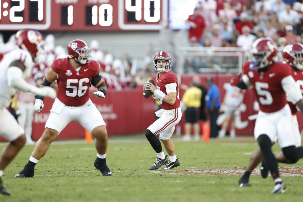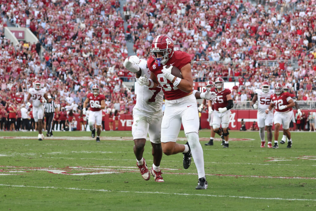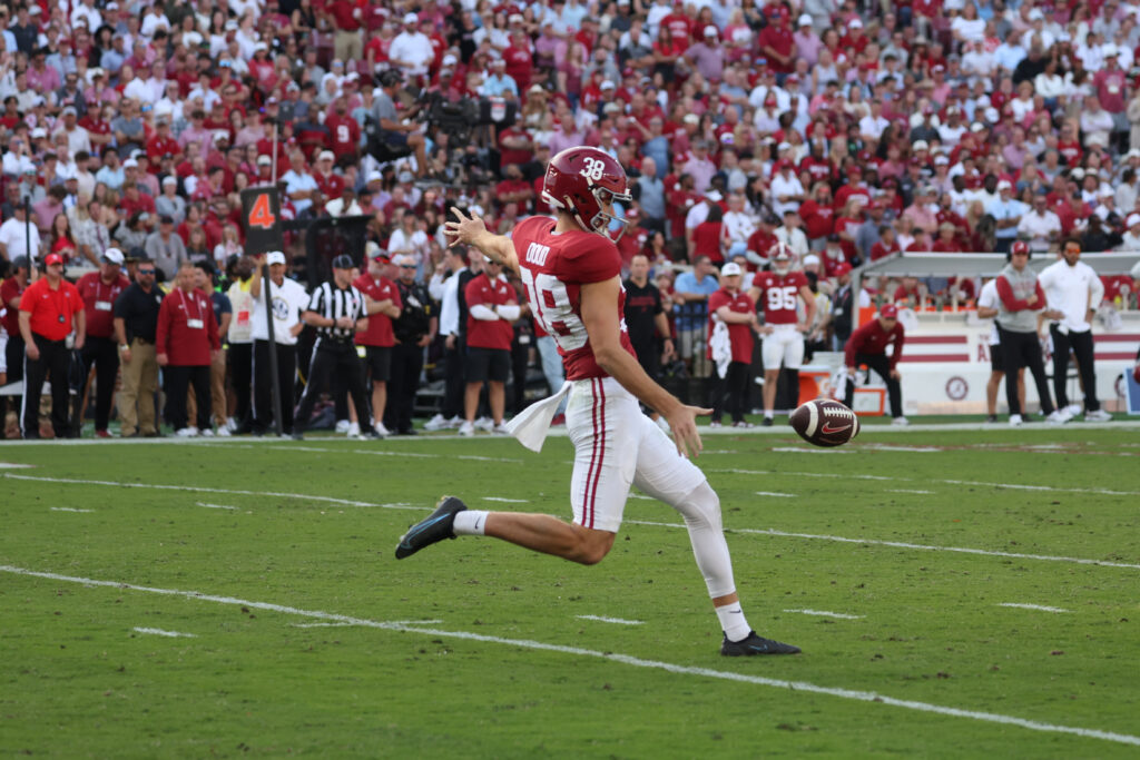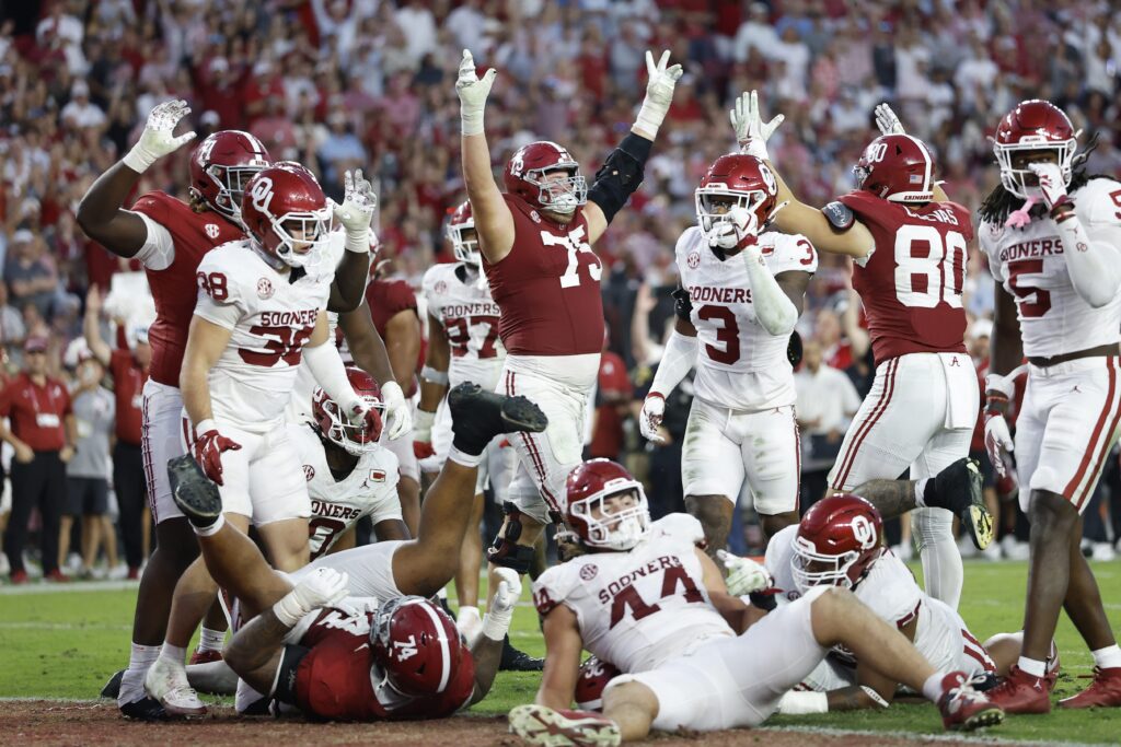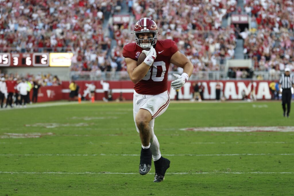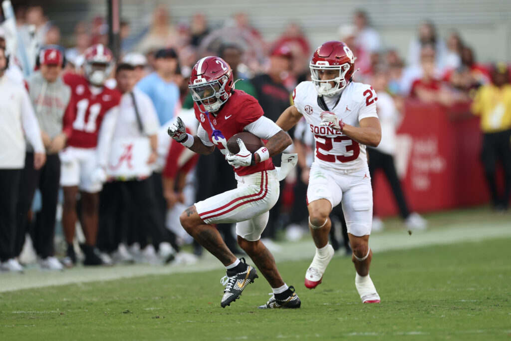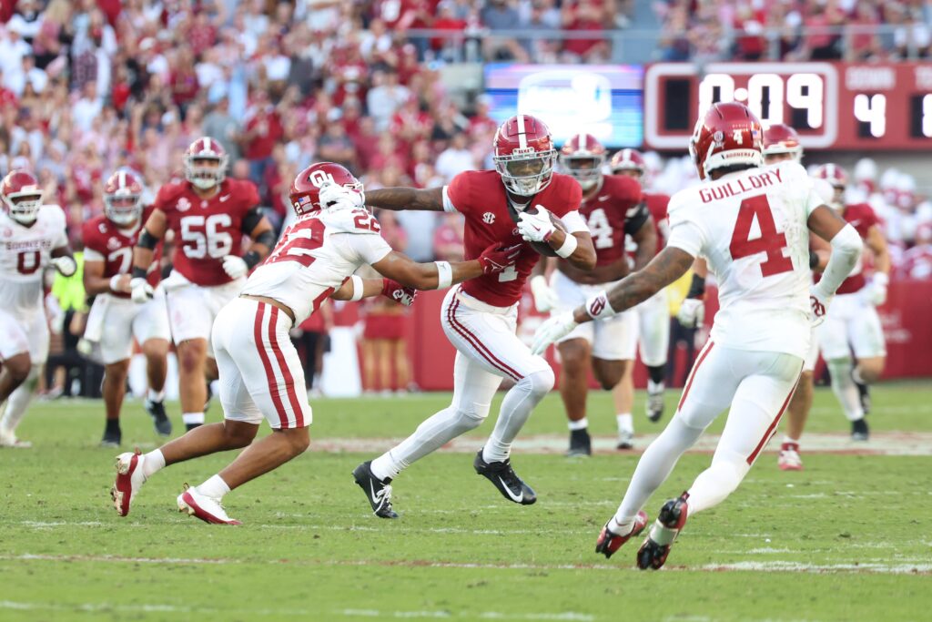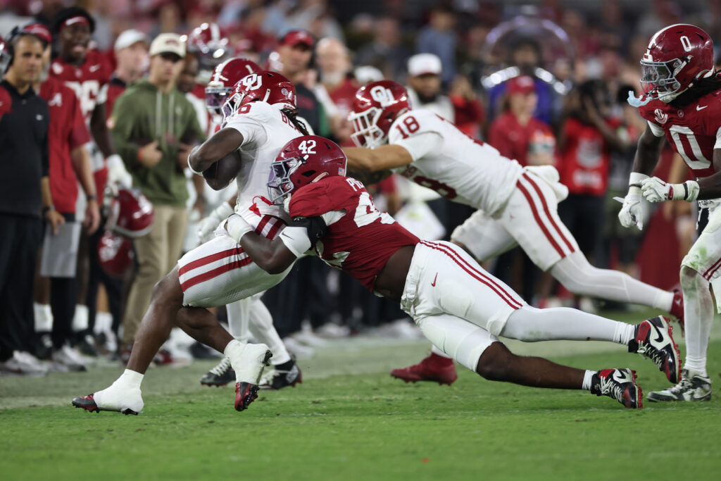 Alabama Wide Receiver Ryan Williams (2) in action against Oklahoma at Bryant-Denny Stadium in Tuscaloosa, AL on Saturday, Nov 15, 2025.Alabama Quarterback Ty Simpson (15) on offense against Oklahoma at Bryant-Denny Stadium in Tuscaloosa, AL on Saturday, Nov 15, 2025.Alabama Linebacker Yhonzae Pierre (42) makes a tackle against Oklahoma at Bryant-Denny Stadium in Tuscaloosa, AL on Saturday, Nov 15, 2025.Running Back Daniel Hill (4) sprints down the field at Bryant-Denny Stadium in Tuscaloosa, AL on Saturday, Nov 15, 2025.Tight End Kaleb Edwards (81) on offense against Oklahoma at Bryant-Denny Stadium in Tuscaloosa, AL on Saturday, Nov 15, 2025.Punter Blake Doud (38) punts the ball against Oklahoma at Bryant-Denny Stadium in Tuscaloosa, AL on Saturday, Nov 15, 2025.Wide Receiver Isaiah Horton (1) breaks a tackle against Oklahoma at Bryant-Denny Stadium in Tuscaloosa, AL on Saturday, Nov 15, 2025.Tight End Josh Cuevas (80) runs with the ball at Bryant-Denny Stadium in Tuscaloosa, AL on Saturday, Nov 15, 2025.The University of Alabama football team celebrates a touchdown against Oklahoma at Bryant-Denny Stadium in Tuscaloosa, AL on Saturday, Nov 15, 2025.