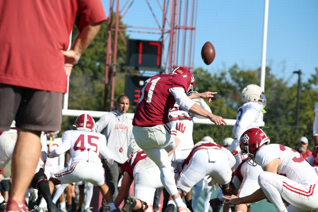 Tuesday’s work started at 9:10 a.m. CT, as Alabama prepares for its upcoming matchup with LSU. The Crimson Tide and Tigers will meet on Saturday, November 8, at 6:30 p.m. Catch the action on ABC with Sean McDonough, Greg McElroy, and Molly McGrath on the call.