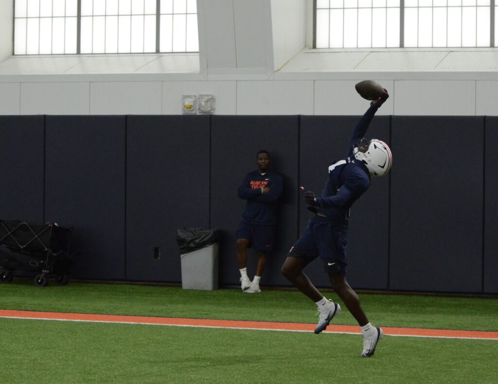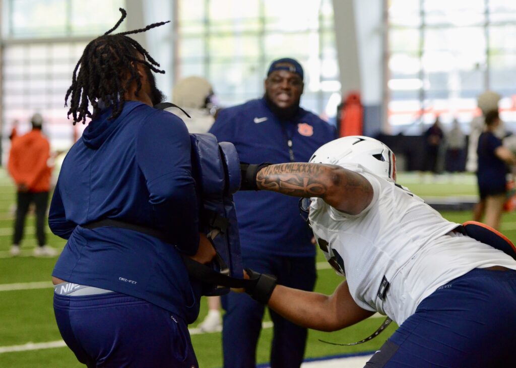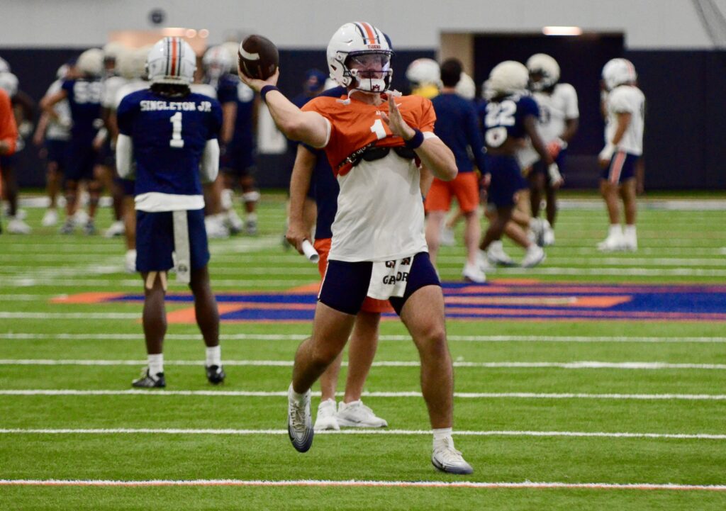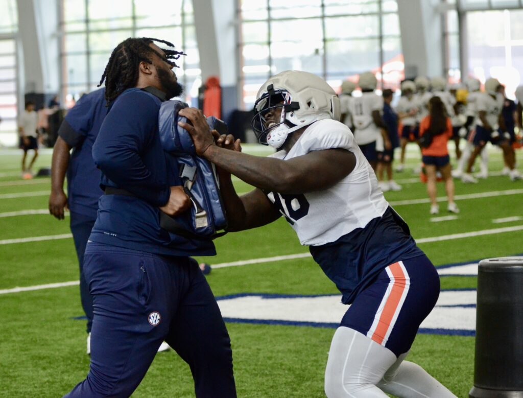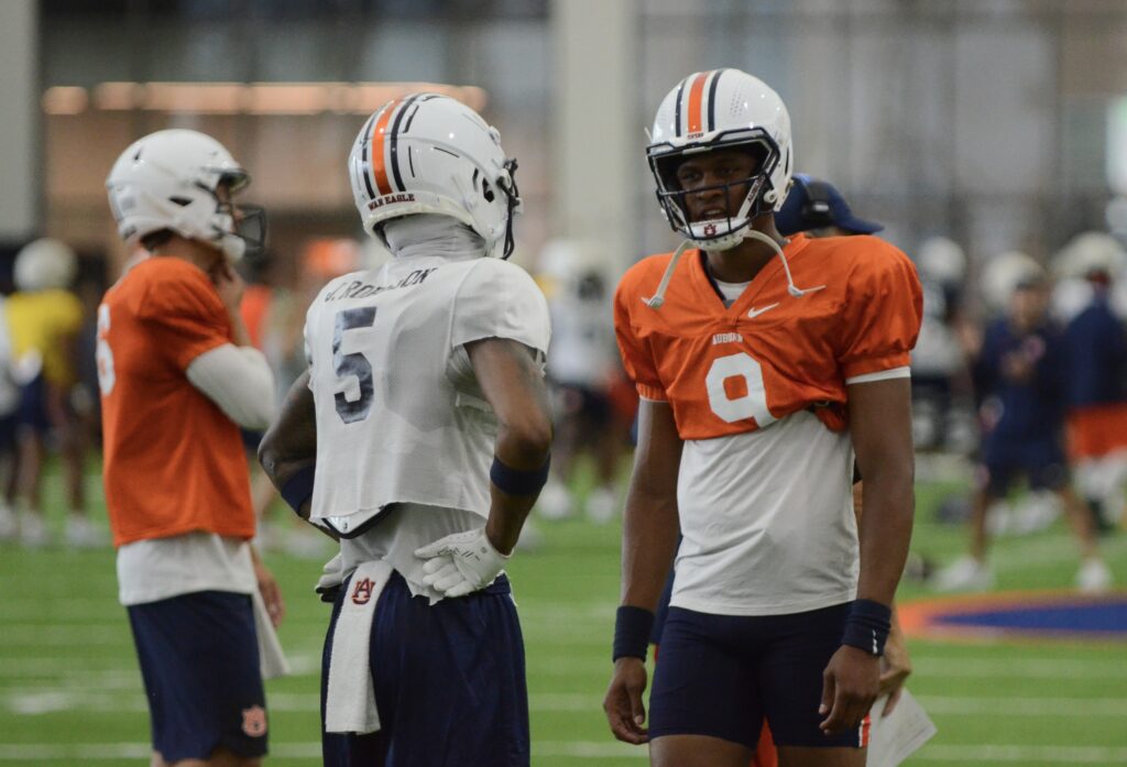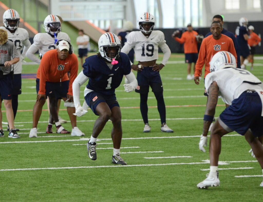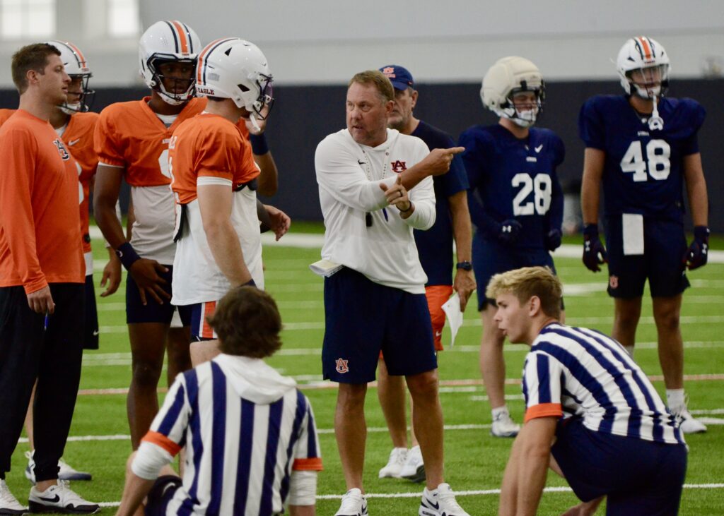 Rain in the area forced Auburn to the indoor facility Monday for a two-hour workout. It was their fifth practice of fall camp — and they’ll resume season preparations Tuesday morning.