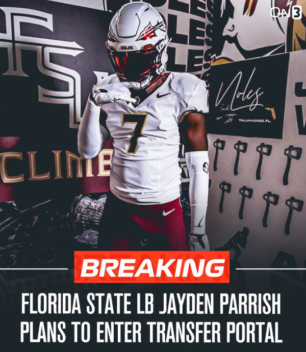 Florida State redshirt freshman linebacker Jayden Parrish plans to enter the transfer portal, On3’s Pete Nakos reported Thursday.