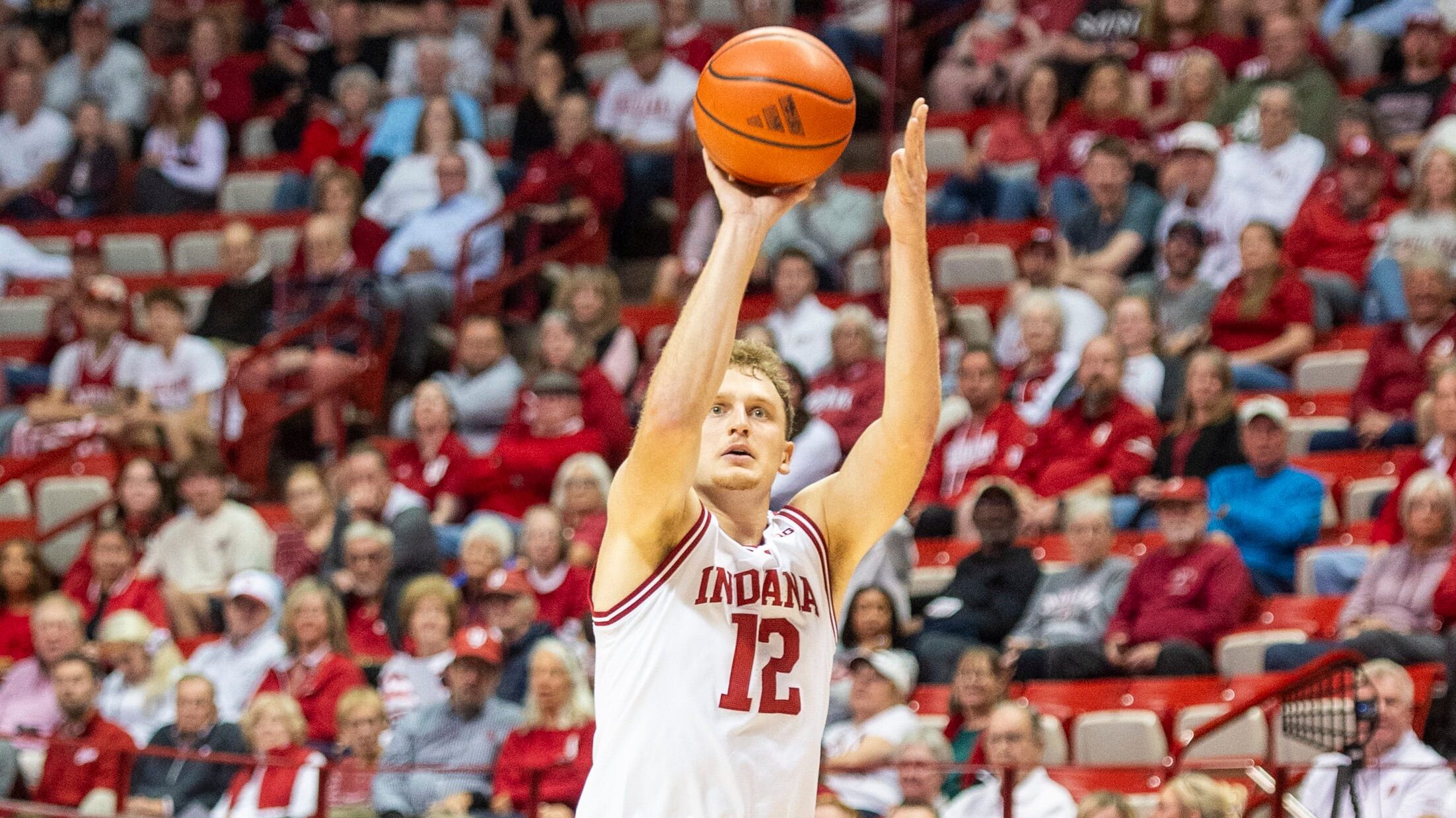 Indiana’s first basket came from deep, and the Hoosiers kept on shooting all game long. In the first half, Indiana shot 12-for-20 from 3-point range, with DeVries making 5 of 7 from 3 in the first 20 minutes.